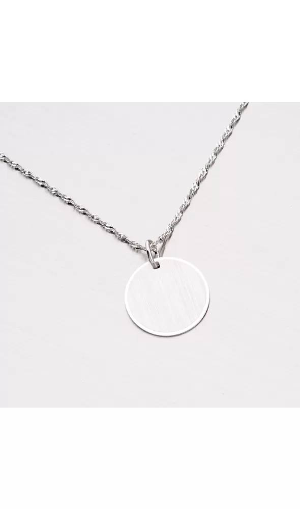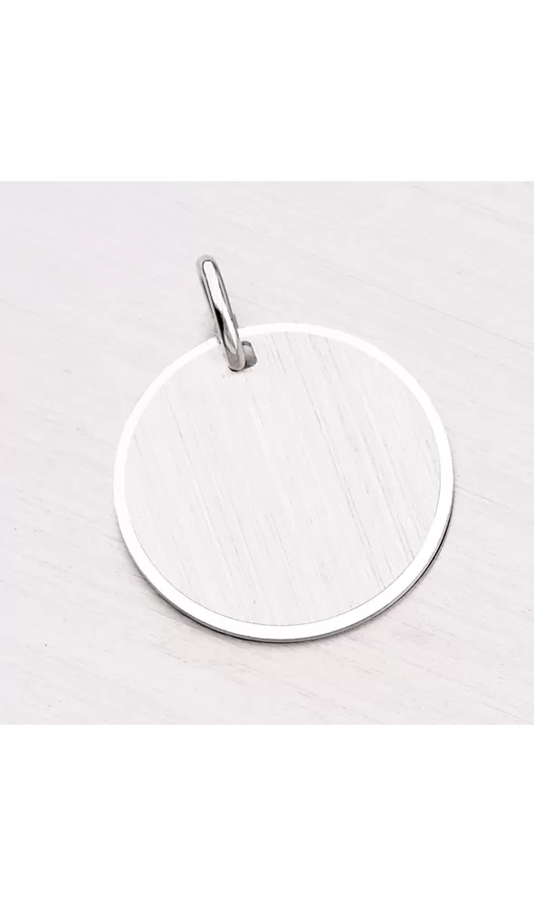 Moderný okrúhly prívesok bude ideálnym príveskom v kombinácii s rytinou, ktorú môžete dať, ako na prednú, tak aj na zadnú stranu prívesku. Vyryť môžete nechať Vami vybraný text ako je napr. meno alebo písmeno. Opis rytiny prosím uveďte v kolónke špeciálne požiadavky. Prívesok je v brúsenom mate a má lesklé bočné facety, ktoré sú zhotovené diamantovým nástrojom, ktorý zaisťuje maximálny lesk.