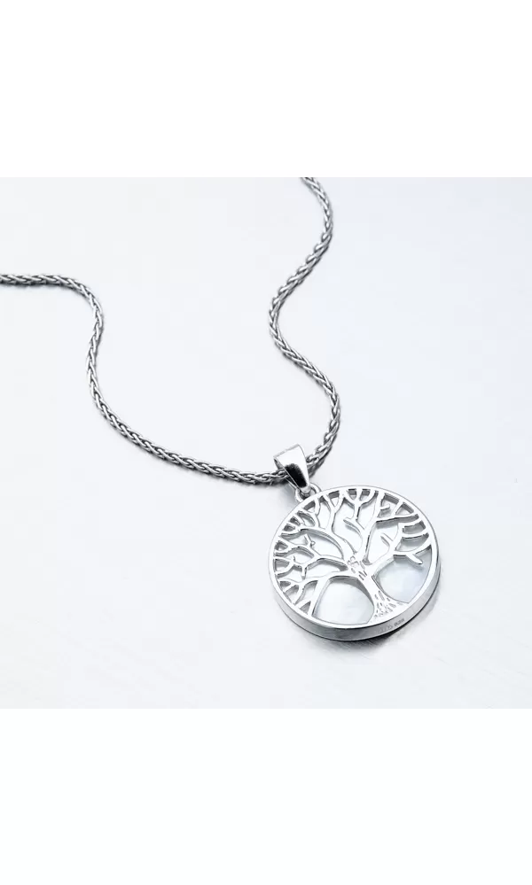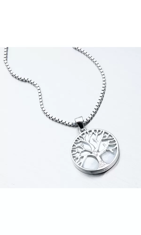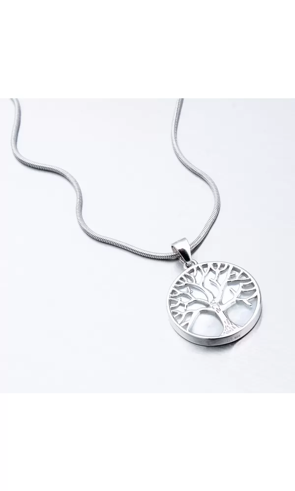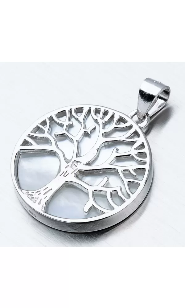 Prekrásny šperk, ktorý musíte mať. Prívesok je okrúhleho tvaru vyplnený perleťou, ktorá slúži ako podklad pre úchvatný strom života ktorý tak milujete. Strom je v hladkej povrchovej úprave, elegantne spracovaný.