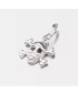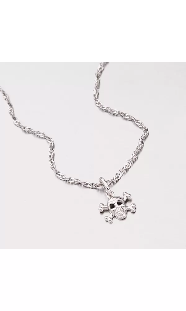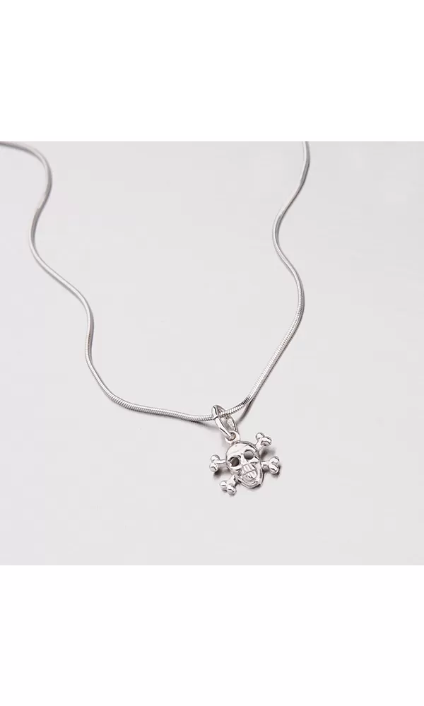 Prívesok vyrobený zo striebra o rýdzosti 925/1000 v lesklej povrchovej úprave má tvar lebky s prekríženými kosťami v pozadí. Prívesok je decentný a vďaka svojej malej veľkosti ho možno nosiť aj na náramku. Iste urobí radosť každému, ktorý nemá práve v obľube srdiečka alebo zvieratká. Povrch prívesku je zušľachtený rhodiovaním. Ródium je ušľachtilý drahý kov zo skupiny platinových kovov. Rhodiovaním strieborných šperkov galvanickým nanášaním tohto drahého platinového kovu sa stáva povrch šperku tvrdší, stálejší a odolnejší voči vonkajším vplyvom ako je mechanický oter, poškriabanie, nabiehanie striebra, ľudský pot, kozmetické prípravky a ďalšie. Ródium je antialergické.