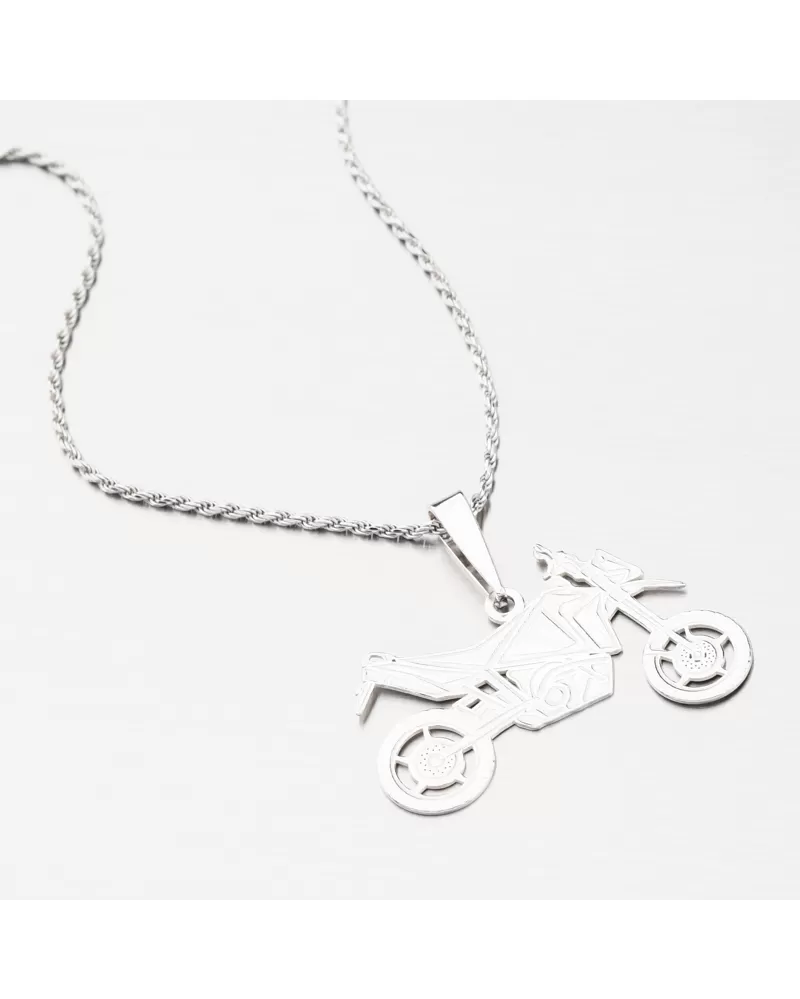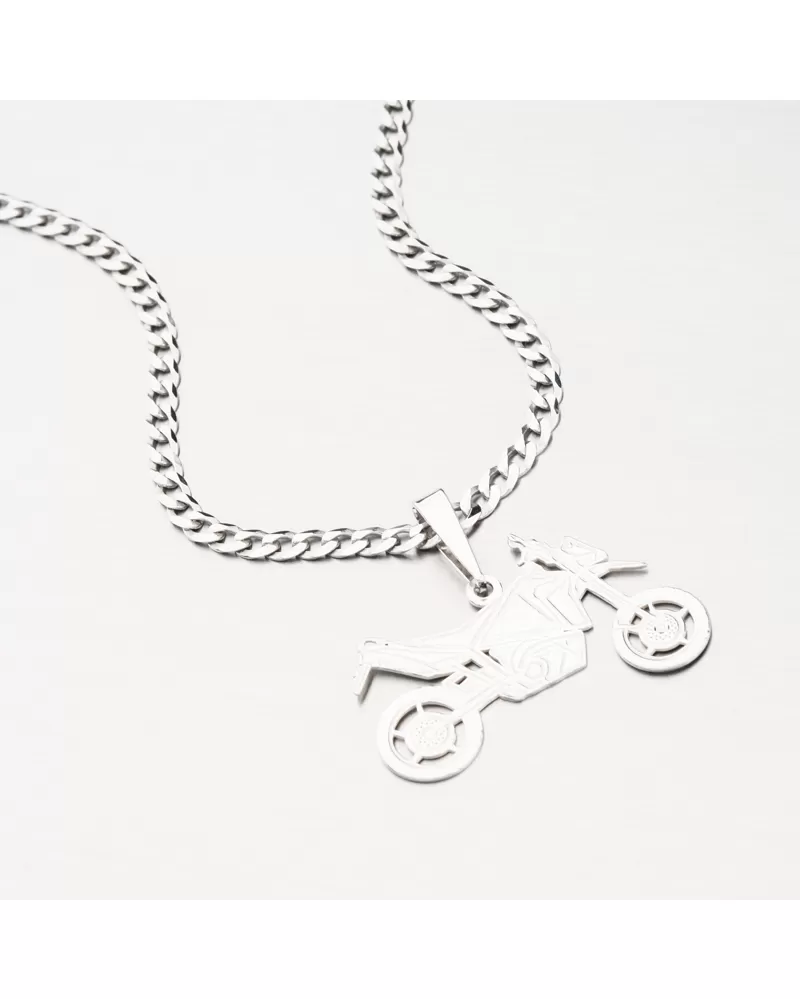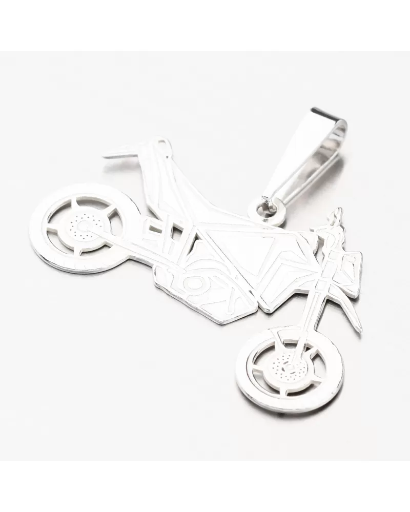 Pre fanúšikov motoriek a slobodnej jazdy na dvoch kolesách prinášame strieborný prívesok, ktorý zaručene zaujme. Je totiž v tvare športovej motorky s detailným spracovaním, kde za pomoci rýh a zamatového matu sa dokonale dokreslí tvar motorky.