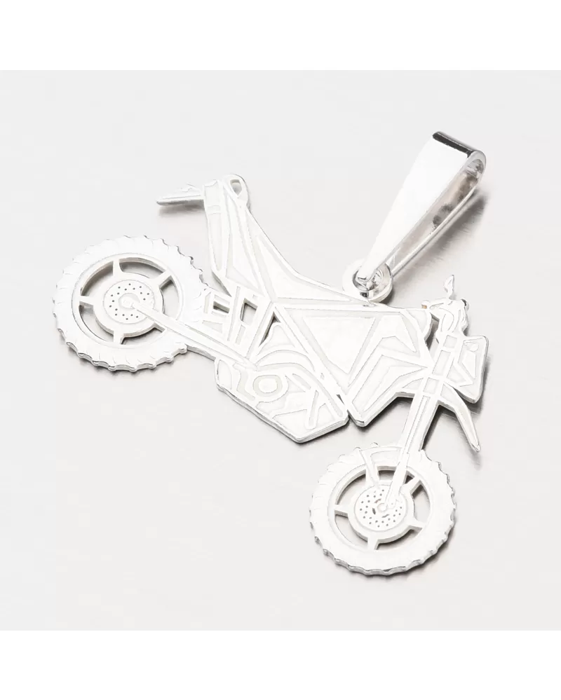 Pre fanúšikov motoriek a slobodnej jazdy na dvoch kolesách prinášame strieborný prívesok, ktorý zaručene zaujme. Je totiž v tvare motorky s detailným spracovaním, kde za pomoci rýh a zamatového matu sa dokonale dokreslí tvar motorky.