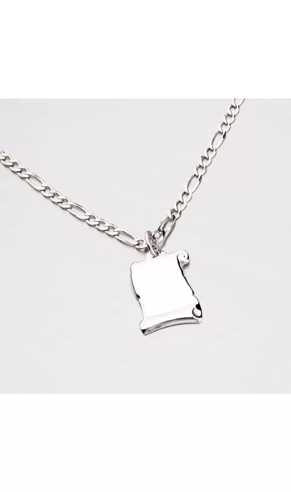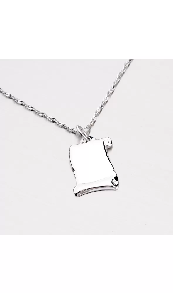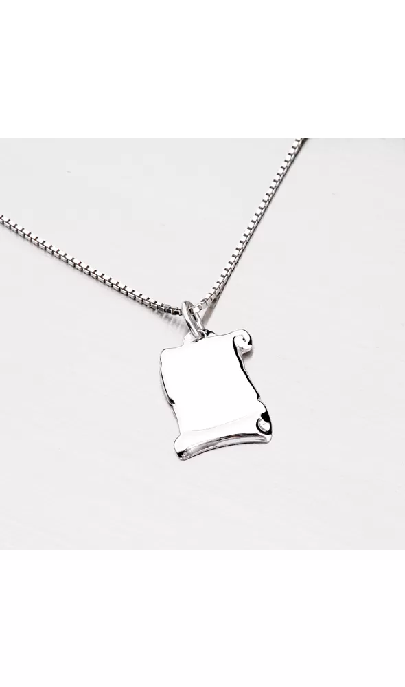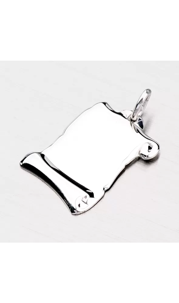 Obľúbený strieborný prívesok v tvare pergamenu. Tento prívesok je ideálny s rytinou, ktorú môžete dať, ako na prednú, tak aj na zadnú stranu prívesku. Vyryť môžete nechať Vami vybraný text ako je napr. monogram, iniciály, venovanie. Opis rytiny prosím uveďte v kolónke špeciálne požiadavky.
