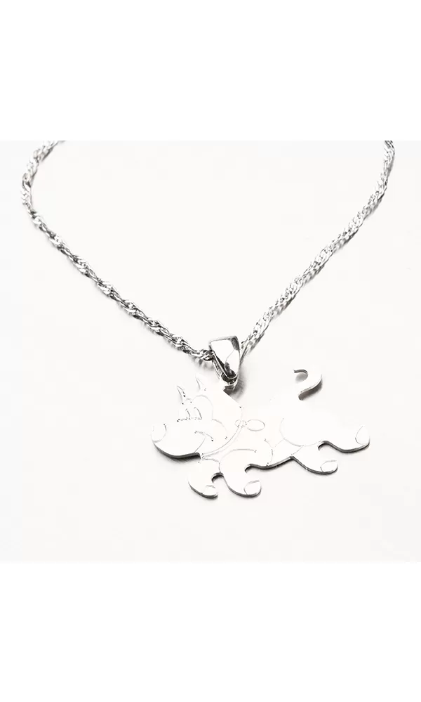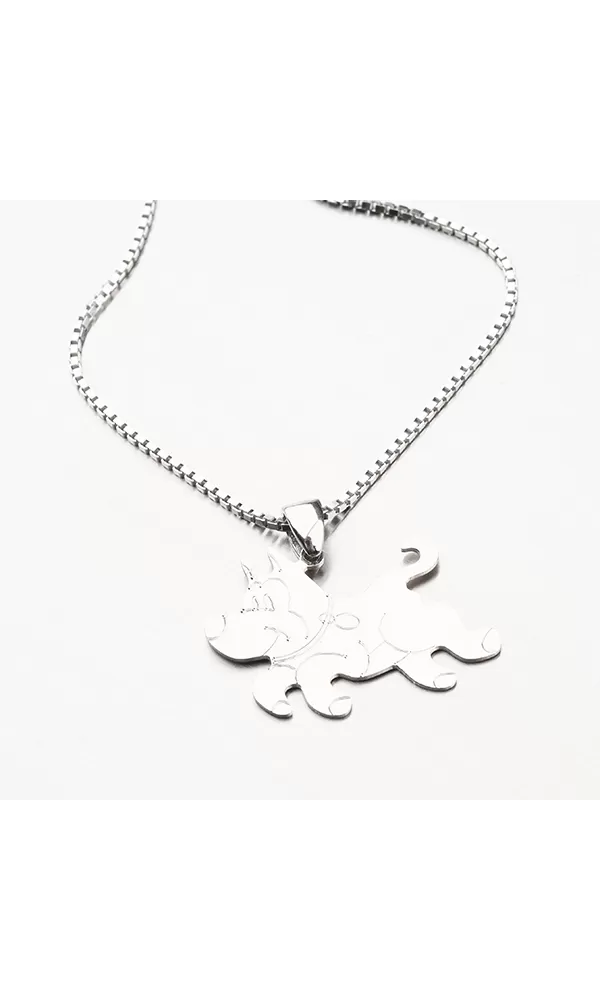 Prívesok je vyrobený zo striebra o rýdzosti 925/1000 a povrch prívesku je leštený do vysokého lesku a zušľachtený je rhodiovaním. Ródium je ušľachtilý drahý kov zo skupiny platinových kovov. Rhodiovaním strieborných šperkov galvanickým nanášaním tohto drahého platinového kovu sa stáva povrch šperku tvrdší, stálejší a odolnejší voči vonkajším vplyvom ako je mechanický oter, poškriabanie, nabiehanie striebra, ľudský pot, kozmetické prípravky a ďalšie. Ródium je antialergické.