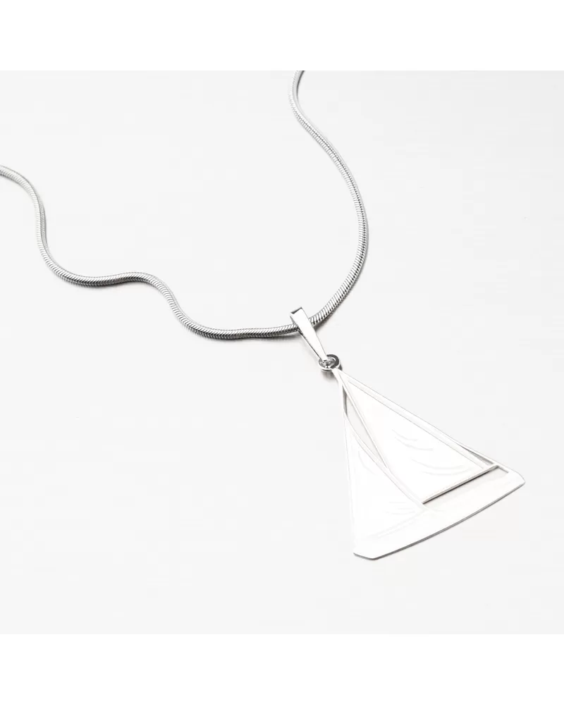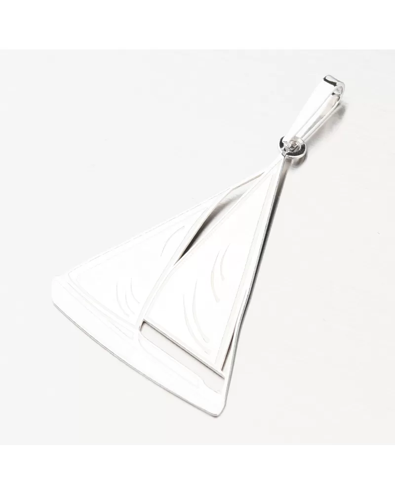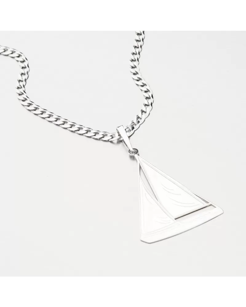 Strieborný námornícky prívesok v tvare plachetnice. Ideálny šperk pre milovníkov vodáckeho športu. Prívesok je do detailu prepracovaný, aby čo najlepšie vykreslil motív plachetnice a to pomocou rýh a zamatového matu.