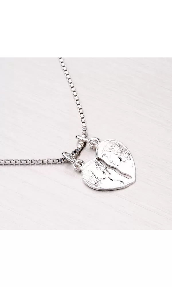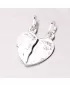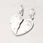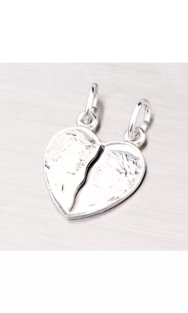 Romantická sada príveskov pre pár v tvare srdca je vyrobená z rhodiovaného striebra rýdzosti 925/1000 v lesklej povrchovej úprave. Prívesok zdobí jemné ručné gravírovanie. Rozlomením docielite dva identické prívesky.