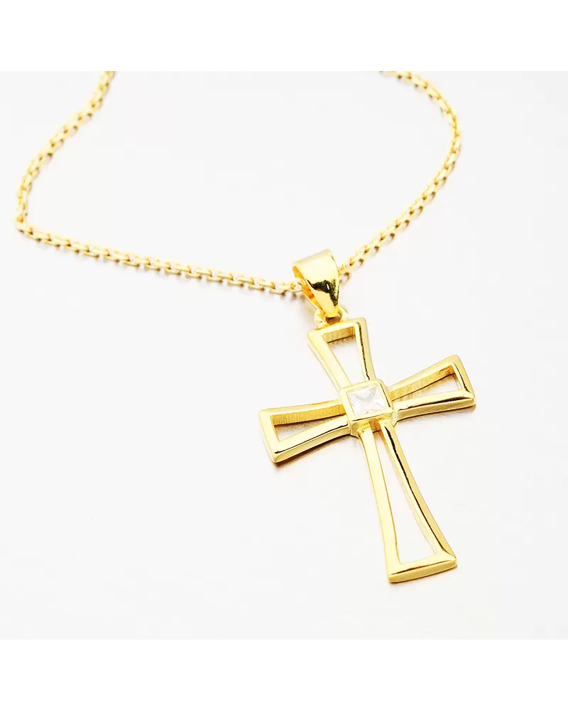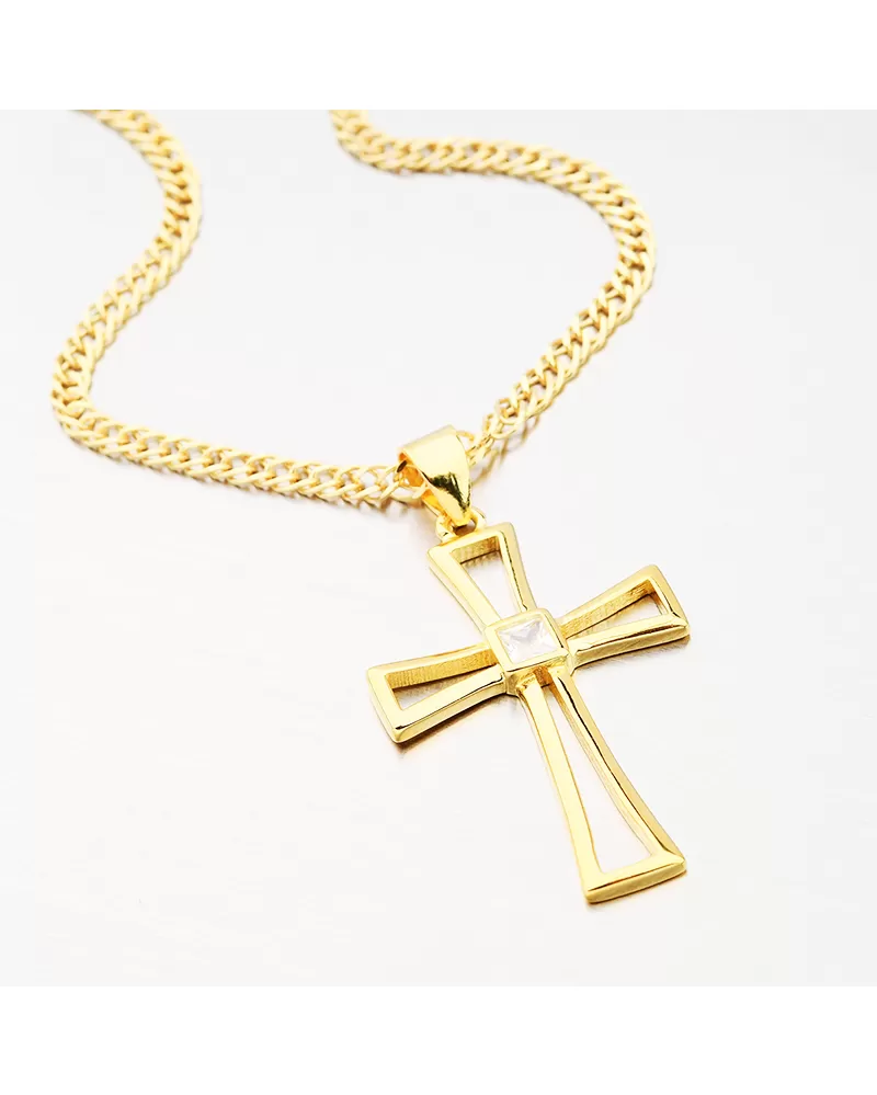 Nádherný kríž v jednoduchom dizajne zdobený jedným zirkónom je vhodný pre ženy aj mužov. Kríž je hladký v lesklej povrchovej úprave pozlátený… Celý popis