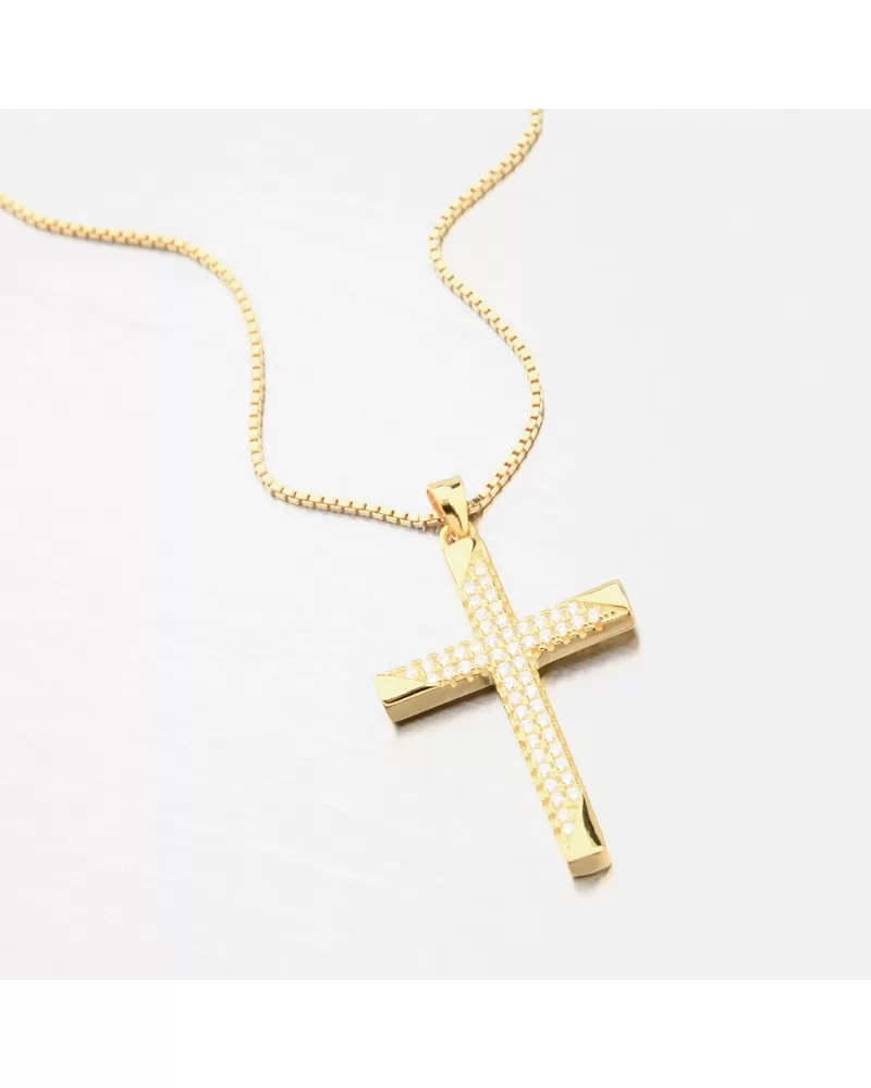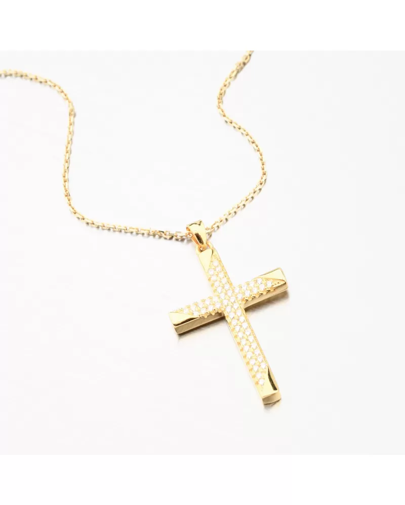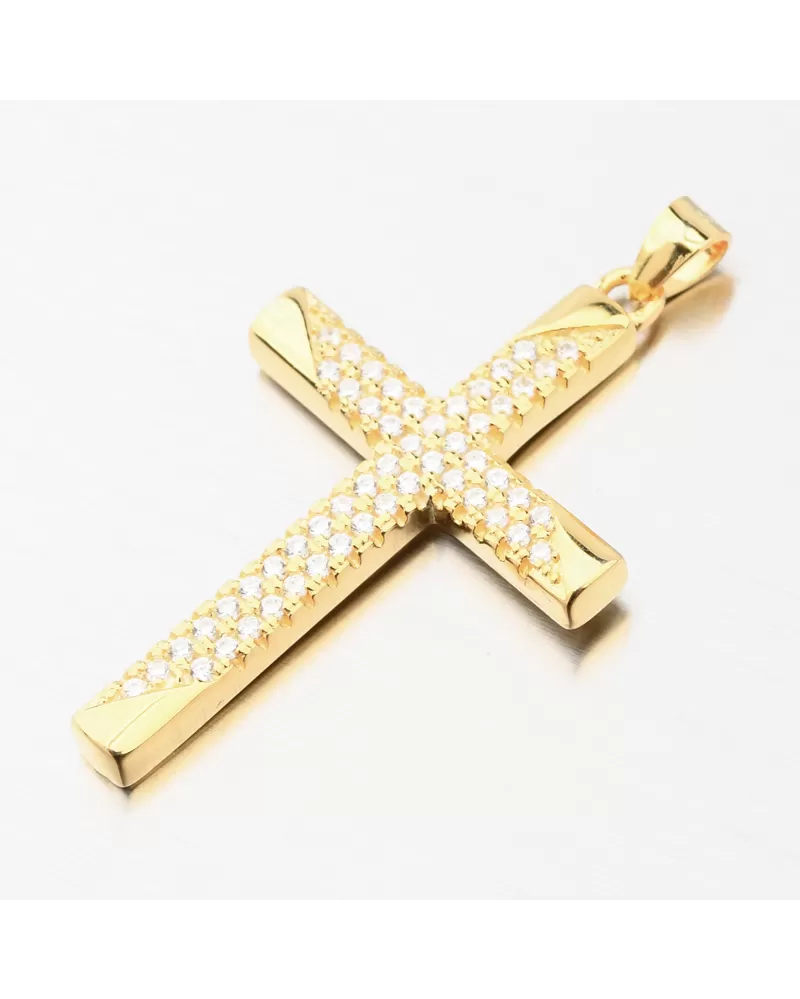 Nádherný kríž vo výraznom dizajne zdobený dvoma radmi zirkónov. Konce kríža sú vo vysokom lesku. Zirkóny sú briliantového brusu, ktorý zaisťuje maximálnu brilanciu vybrúsených facet, dokonale odráža svetlo a neuveriteľne žiari z každého uhla pohľadu.