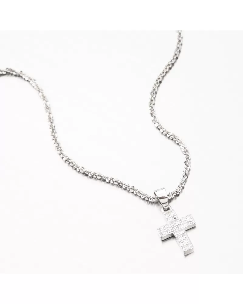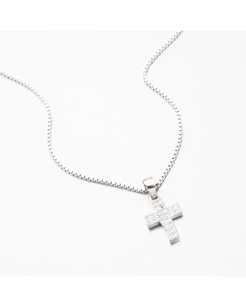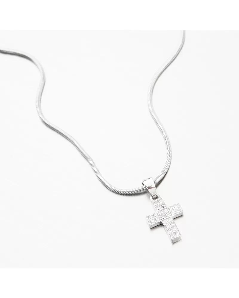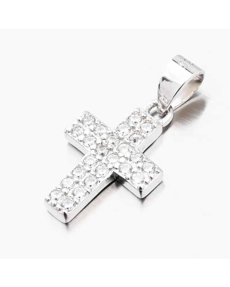 Decentný a jemný strieborný prívesok v tvare kríža. Tento prívesok je zvýraznený o žiarivé zirkóny, ktoré sú na prívesky rovno v dvoch radoch. Zirkóny sú briliantového brusu, ktorý zaisťuje maximálnu brilanciu vybrúsených facet, dokonale odráža svetlo a neuveriteľne žiari z každého uhla pohľadu.