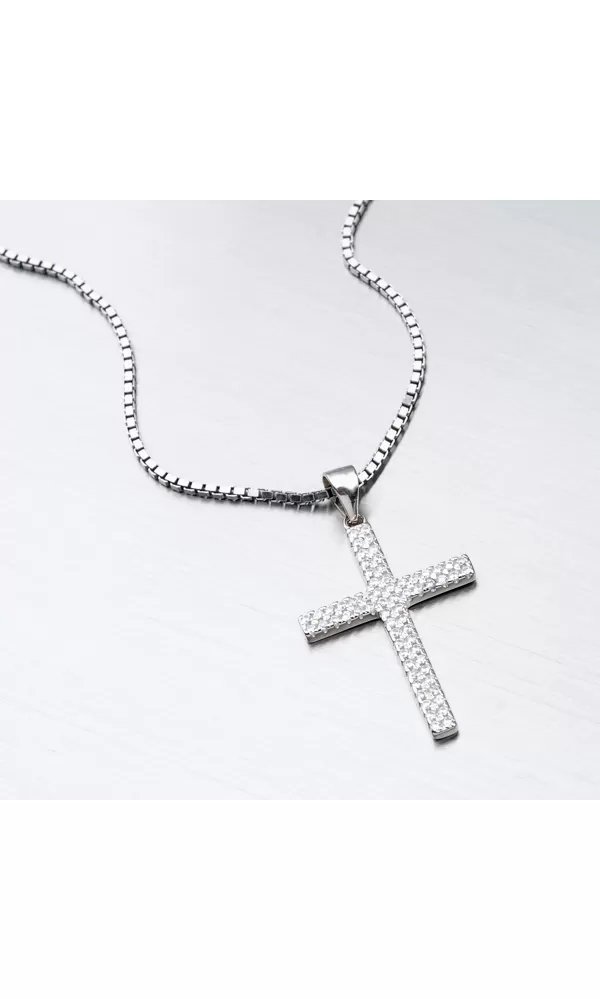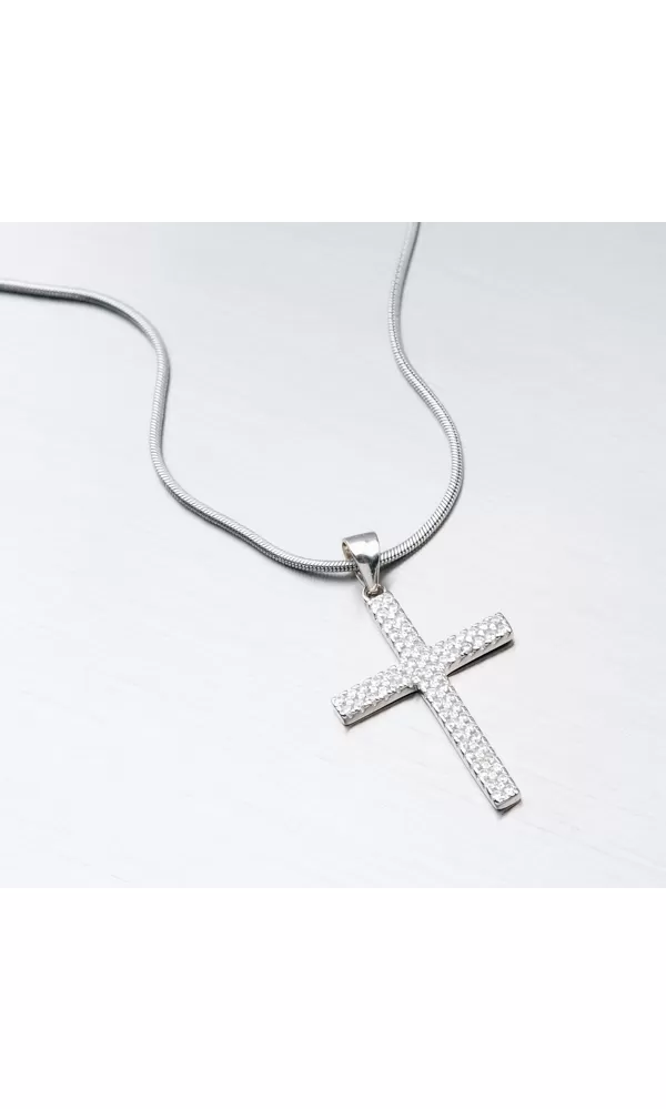 Krížik je vyrobený zo striebra s rýdzosťou 925/1000 a povrch prívesku je leštený do vysokého lesku a zušľachtený je rhodiovaním. Rhodium je ušľachtilý drahý kov zo skupiny platinových kovov. , stálejšie a odolnejšie voči vonkajším vplyvom ako je mechanický oter, poškriabanie, nabiehanie striebra, ľudský pot, kozmetické prípravky a ďalšie. Rhodium je antialergické.