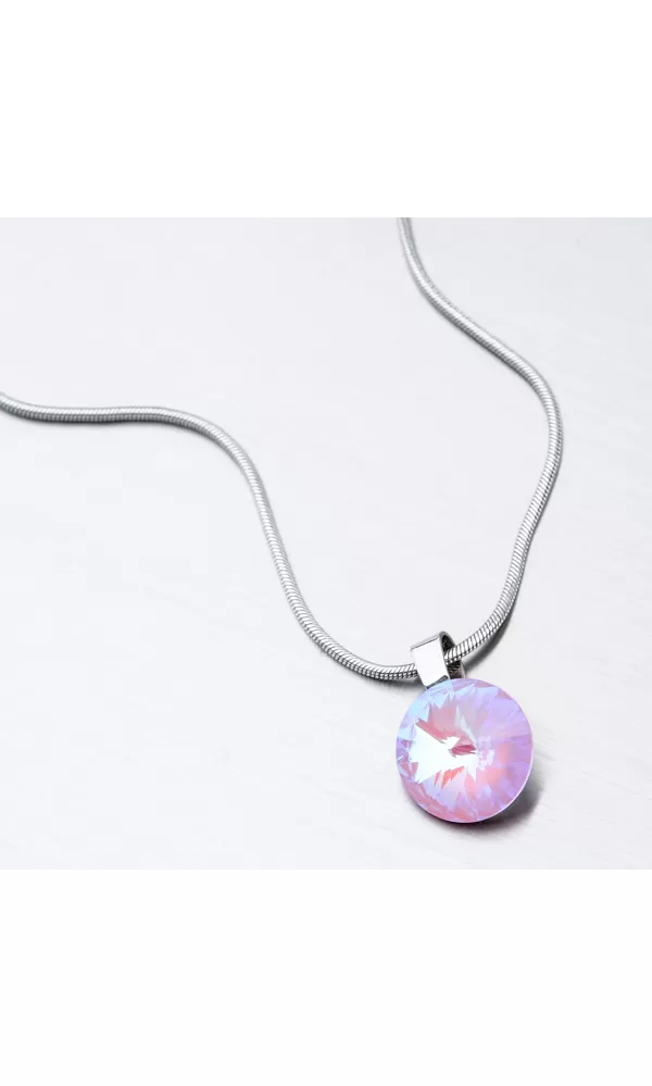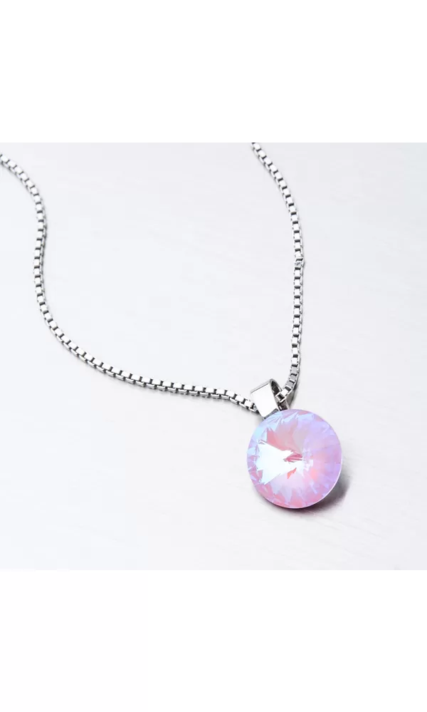 Túžite po žiarivom šperku, ktorý vám rozžiari dekolt? Tento prívesok je v jednoduchom dizajne ale zdobí ho extravagantný kryštál v ružovej farbe precízne brúsený tak, aby dokonale odrážal svetlo. Buďte hravá a podporte prívesok a zlaďte ho s vašim outfitom. K tomuto prívesku je hodná retiazka o šírke 2,50 mm.