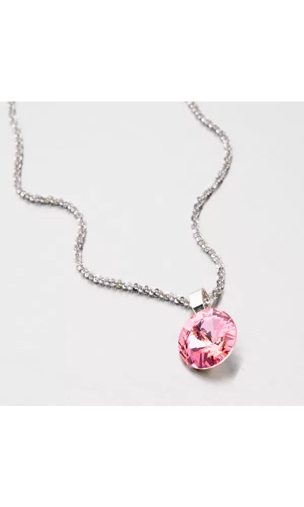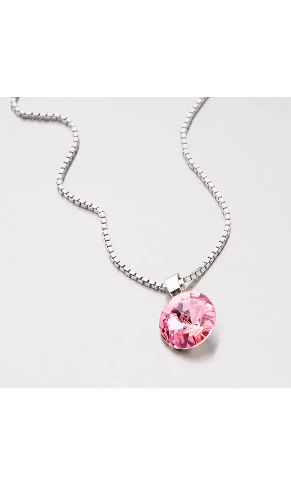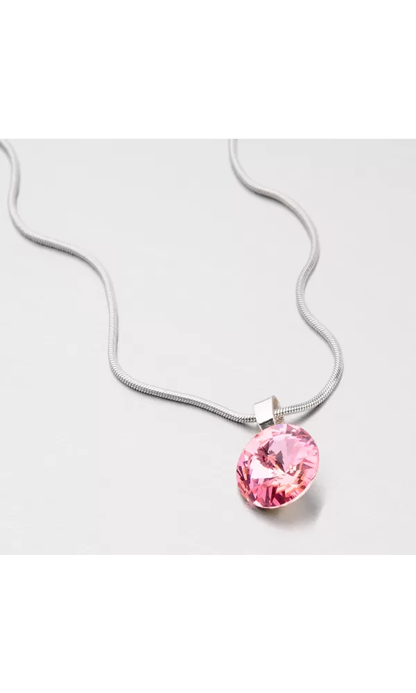 Prívesok je vyrobený zo striebra rýdzosti 925/1000 a je doplnený ružovým kryštálom v lesklej povrchovej úprave.