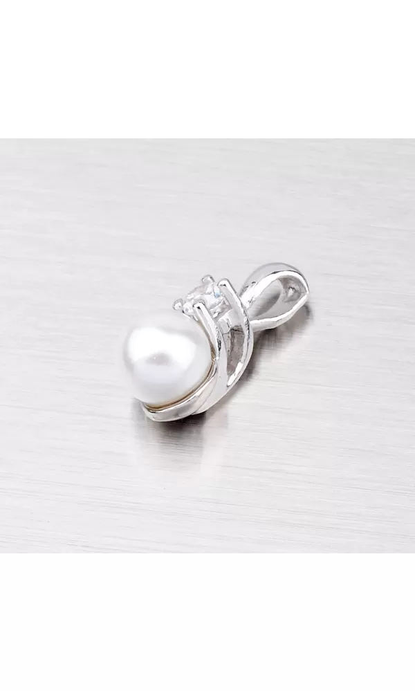 Jemný elegantný prívesok s umelou bielou perlou je vyrobený z rhodiovaného striebra rýdzosti 925/1000. Prívesok je vyrobený v lesklej povrchovej úprave s bielymi zirkónmi.