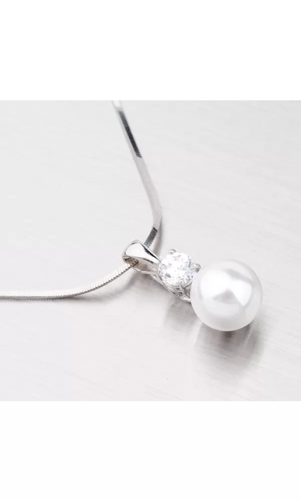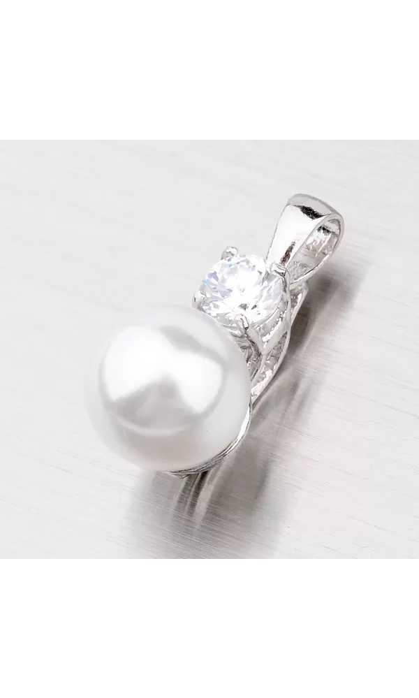 Prívesok s umelou bielou okrúhlou perlou as jedným zirkónom je vyrobený z rhodiovaného striebra rýdzosti 925/1000. Prívesok je vyrobený v lesklej povrchovej úprave s bielymi zirkónmi. K prívesku je vhodné použiť retiazku s priemerom 2,00 mm.