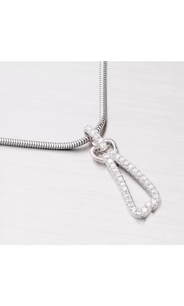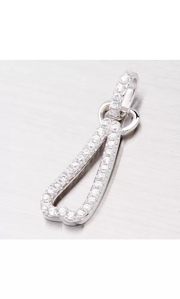 Elegantný prívesok s bielymi zirkónmi, ktoré sú do šperku zasadené technikou microsetting je vyrobený zo striebra rýdzosti 925/1000 v lesklej úprave s rhodiovaním. K prívesku je vhodné použiť retiazku o max. priemere 1,75 mm.