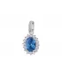 Dámsky prívesok vyrobený zo striebra o rýdzosti 925/1000, zdobí kubický zirkón v modrej farbe. Prívesok dopĺňajú číre kubické zirkóny, ktoré sú vsadené okolo obvodu. Strieborný prívesok je navrhnutý tak, aby dokonale priľnul k dekoltu.