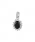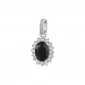 Dámsky prívesok vyrobený zo striebra o rýdzosti 925/1000, zdobí kubický zirkón v čiernej farbe. Prívesok dopĺňajú číre kubické zirkóny, ktoré sú vsadené okolo obvodu. Strieborný prívesok je navrhnutý tak, aby dokonale priľnul k dekoltu.