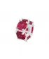 Originálny prívesok s prievlakom je zdobený precízne brúsenými kubickými zirkónmi v červenej farbe. Šperk je vyrobený z rhodiovaného striebra rýdzosti 925/1000. Ródium je ušľachtilý drahý kov zo skupiny platinových kovov. Rhodiovaním strieborných prsteňov galvanickým nanášaním tohto drahého kovu sa stáva povrch šperku tvrdší, stálejší a odolnejší voči vonkajším vplyvom ako je mechanický oter, poškriabanie, nabiehanie striebra, ľudský pot, kozmetické prípravky a ďalšie. Ródium je antialergické. Prívesok je možné umiestniť na retiazku alebo náramok a vytvoriť tak osobitý šperk.
