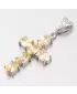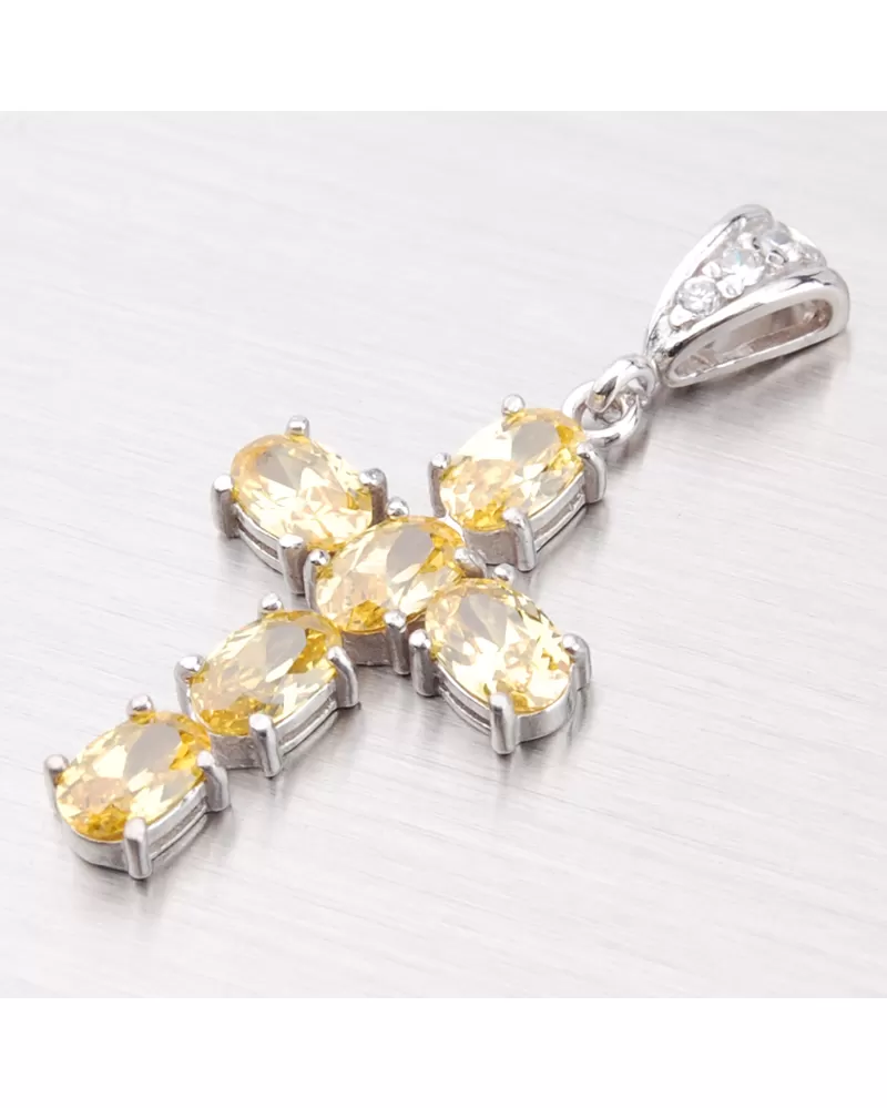 Väčší prívesok zo striebra rýdzosti 925/000 v tvare kríža so šiestimižltými zirkónmi.