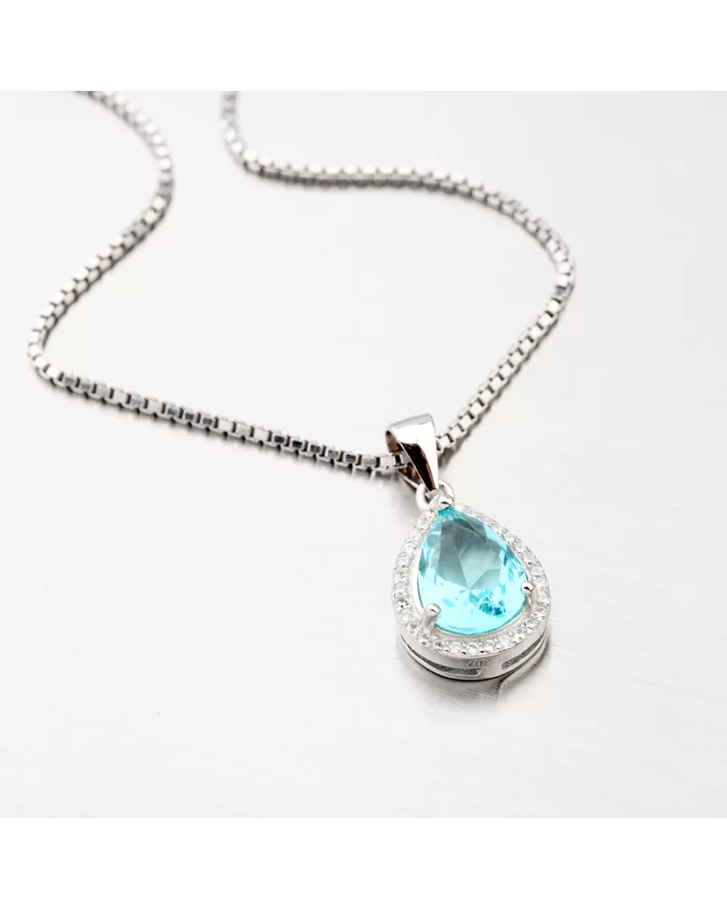 Túžite po niečom výraznom čo ozdobí Váš dekolt? Tak práve pre Vás je tu tento prívesok s modrým zirkónom v tvare kvapky. Okolo modrého zirkónu sú vsadené číre zirkóny v briliantovom bruse.