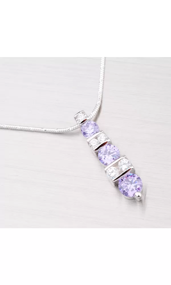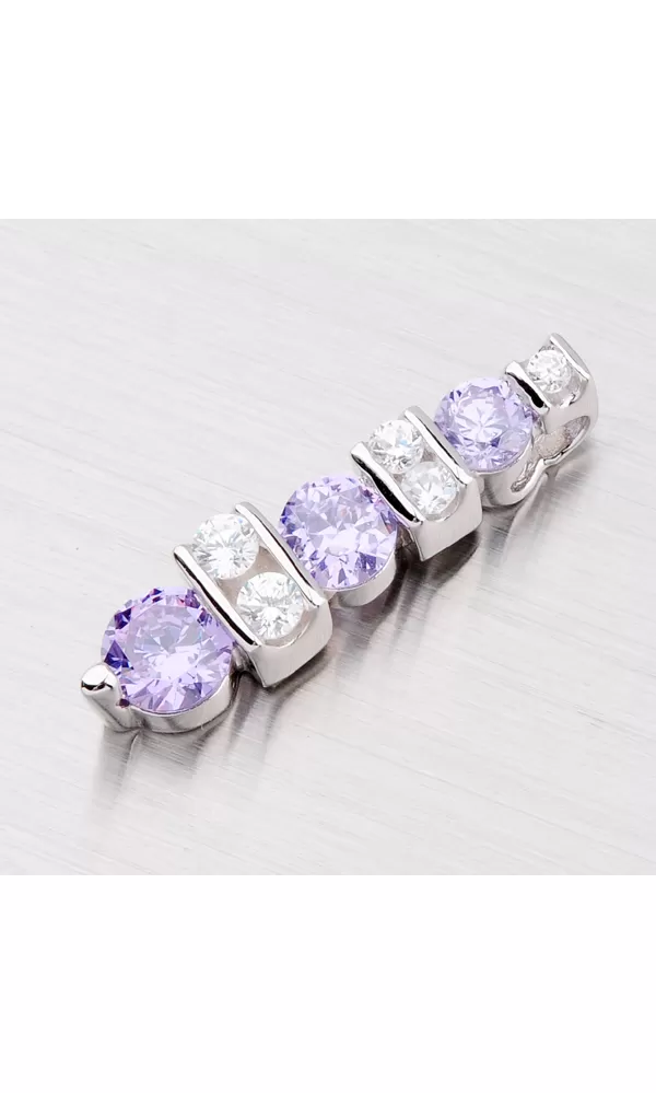 Jemný prívesok s bielymi a fialovými zirkónmi je vyrobený zo striebra rýdzosti 925/1000 v lesklej úprave s rhodiovaním. K prívesku je vhodné použiť retiazku o max. priemere 2,75 mm.