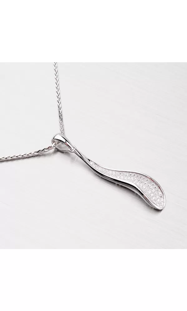 Trblietavý prívesok osadený trblietavými zirkónmi. Prívesok je vyrobený zo striebra rýdzosti 925/1000 s rhodiovaním v lesklej povrchovej úprave. K prívesku je vhodné použiť retiazku s max. priemerom 2,50 mm.