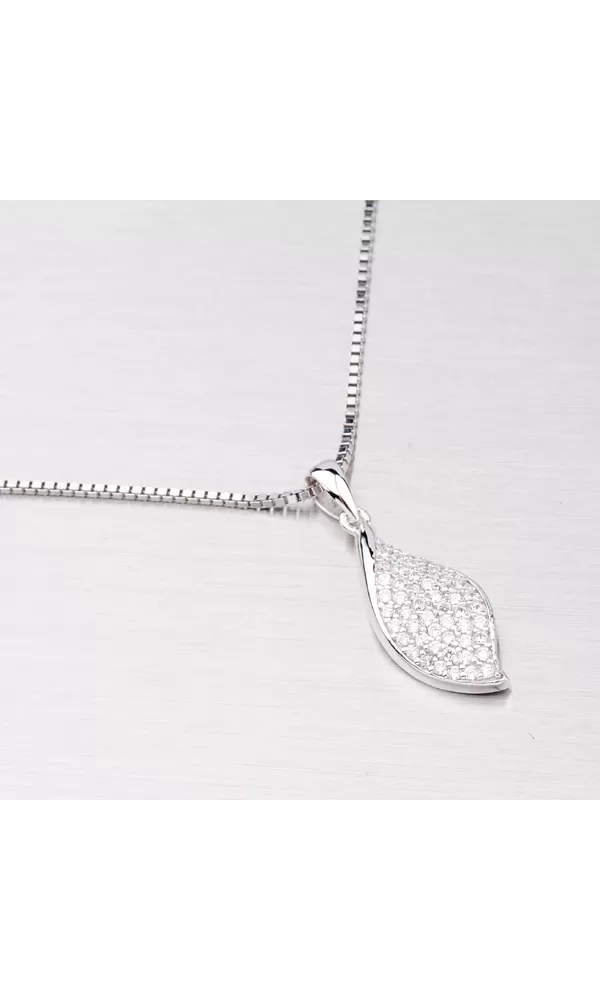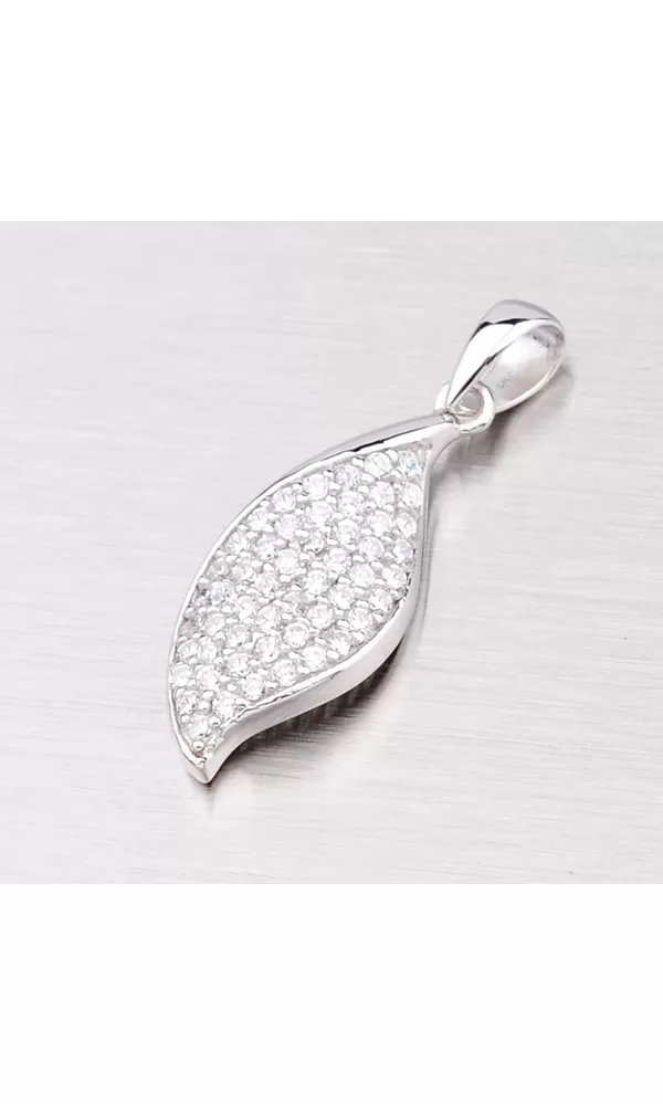 Krásny elegantný prívesok je vyrobený zo striebra rýdzosti 925/1000. Prívesok je vyrobený v lesklej povrchovej úprave a je ozdobený bielymi drobnými zirkónmi, ktoré sú do šperky zasadené technikou microsetting. K tomuto prívesku je vhodné použiť retiazku s priemerom max. 2,25 mm.