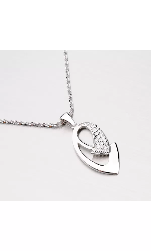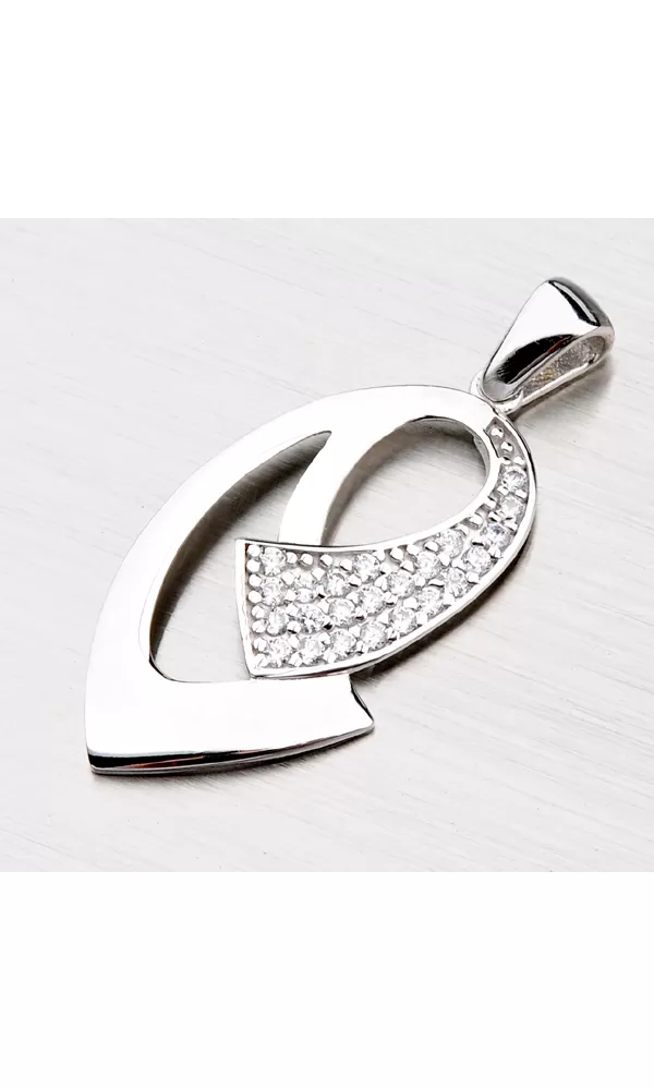 Elegantný prívesok je dekorovaný čírymi zirkónmi, ktoré zaujmú neuveriteľným leskom. Prívesok je vyrobený zo striebra rýdzosti 925/1000 v lesklej povrchovej úprave a povrch prívesku je zušľachtený rhodiovaním. Ródium je ušľachtilý drahý kov zo skupiny platinových kovov. Rhodiovaním strieborných šperkov galvanickým nanášaním tohto drahého platinového kovu sa stáva povrch šperku tvrdší, stálejší a odolnejší voči vonkajším vplyvom ako je mechanický oter, poškriabanie, nabiehanie striebra, ľudský pot, kozmetické prípravky a ďalšie. Ródium je antialergické.