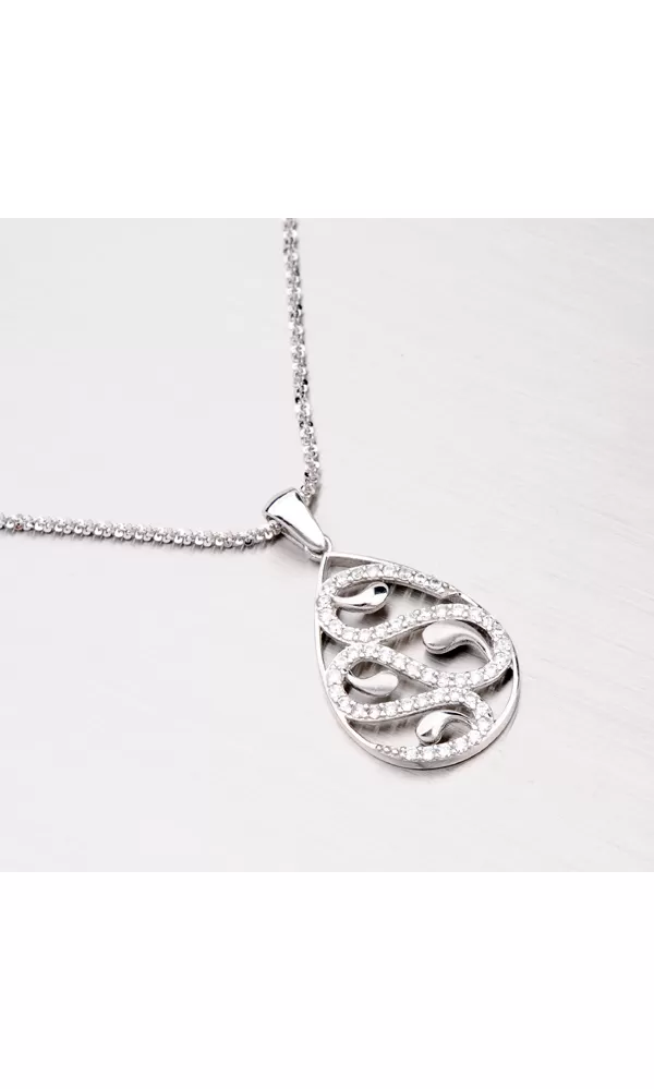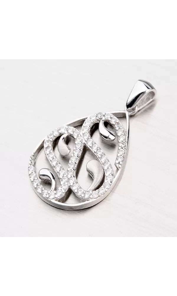 Elegantný prívesok je dekorovaný čírymi zirkónmi, ktoré zaujmú neuveriteľným leskom. Prívesok zdobí vlnková časť so zirkónmi a vo vnútornej časti prívesku sú lesklé a zamatovo matné pacičky.
