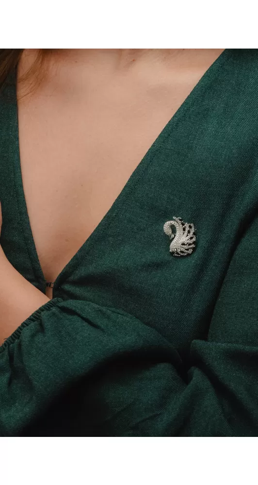Táto brošňa s motívom labute bude originálnym a krásnym darčekom pre Vašu milovanú osobu. Brošňa rozhodne nepatrí len do výbavy našich babičiek, je totiž veľmi obľúbeným šperkom súčasnej doby. Tento šperk je povinnou výbavou šperkovnice mladých aj starších manažérok, ale aj žien, ktoré sa jednoducho len rady páčia. Šperk je osadený žiarivými zirkónmi bielej farby v briliantovom bruse a túto nádheru ešte navyše zdvihnú čierne zirkóny, ktoré sú oválneho tvaru. Labuť je symbolom krásy, vernosti alebo napríklad nevinnosti.