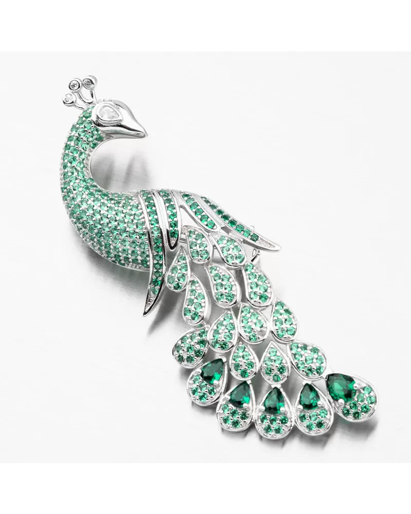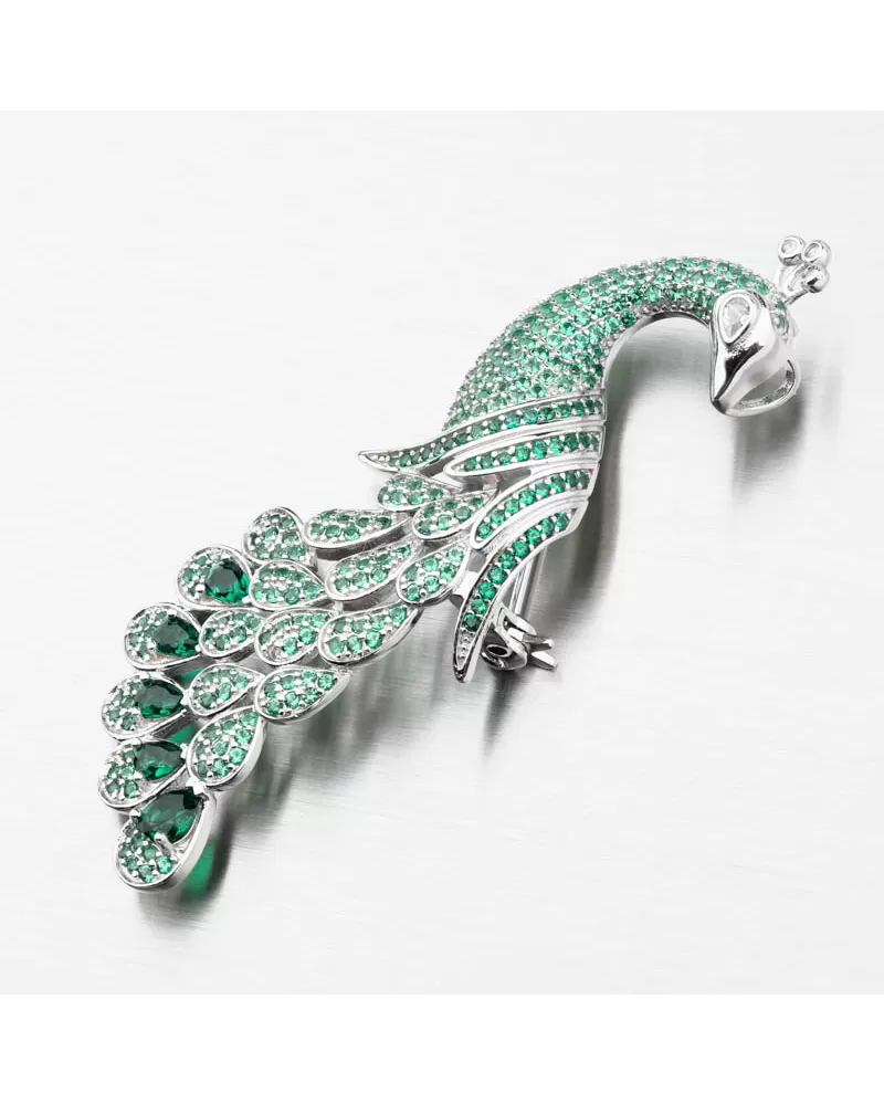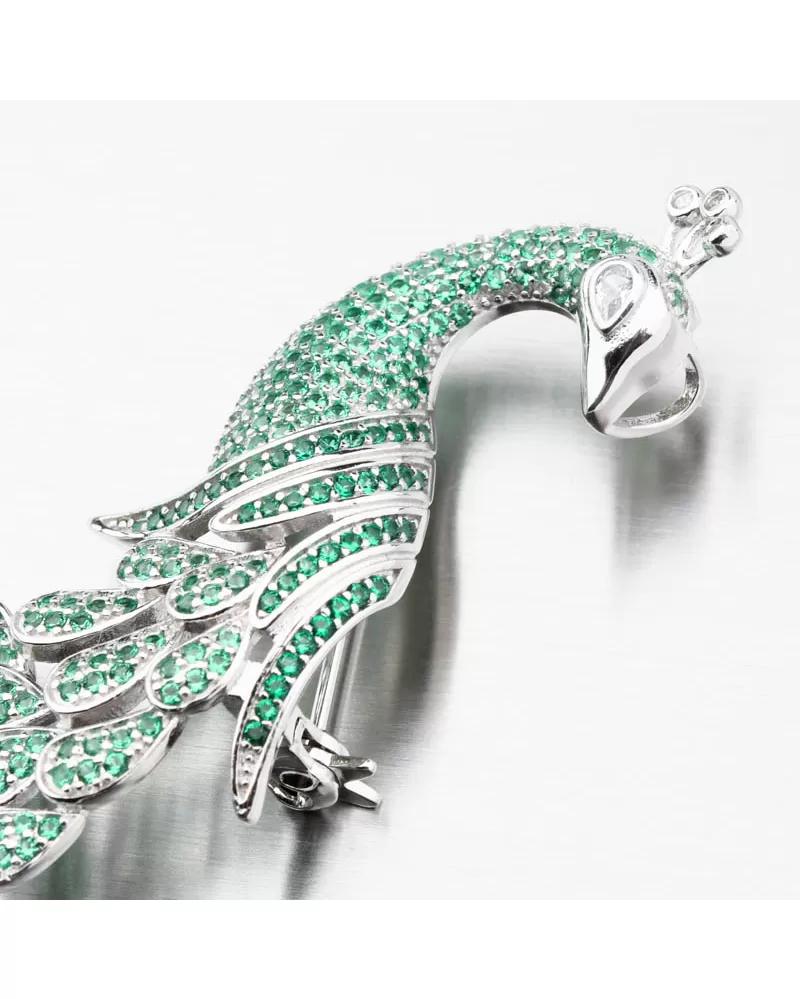 Strieborná brošňa Peacock so zelenými zirkónmi PKL-6009