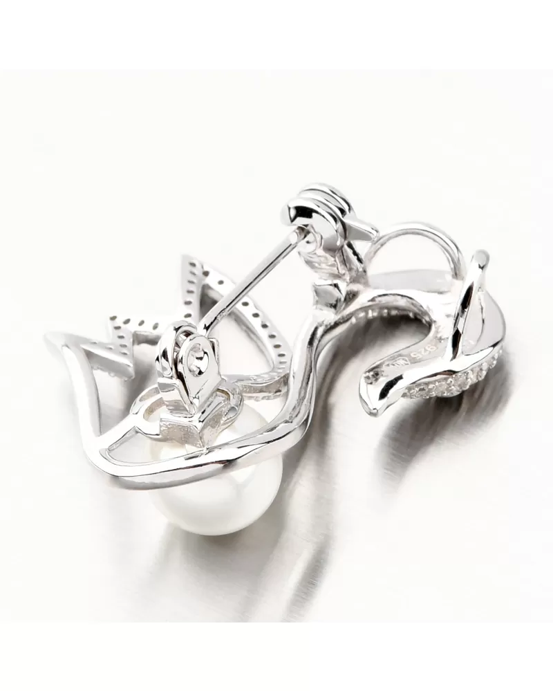 Strieborná brošňa labuť s perlou a so zirkónmi PKL-6012