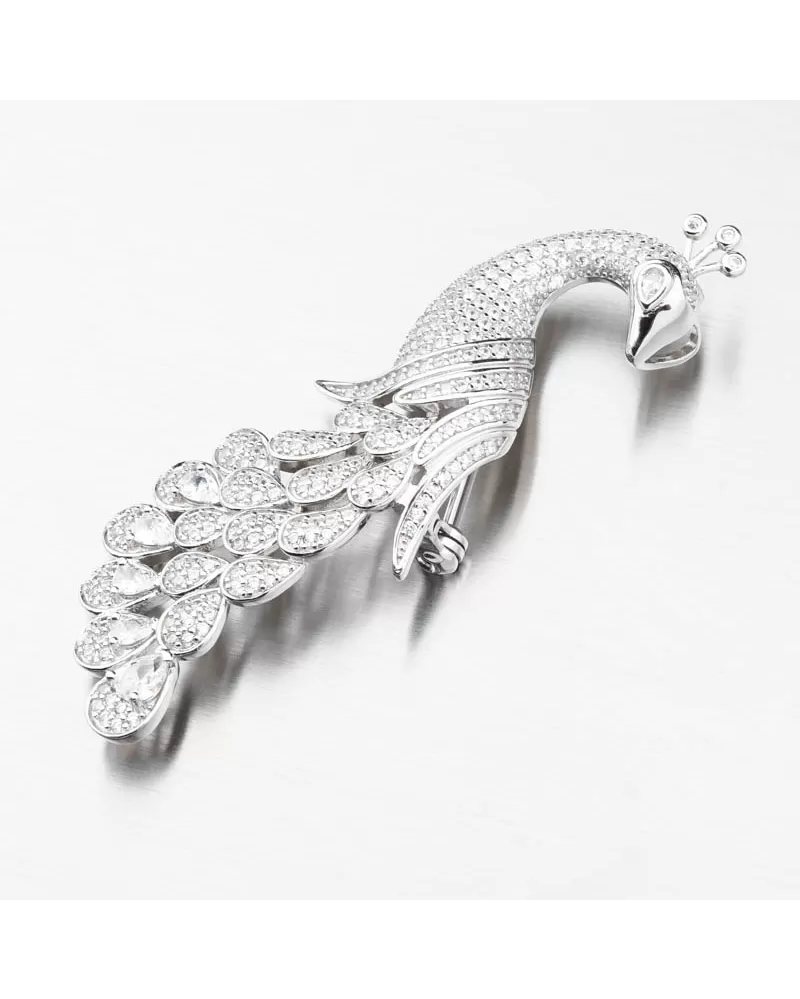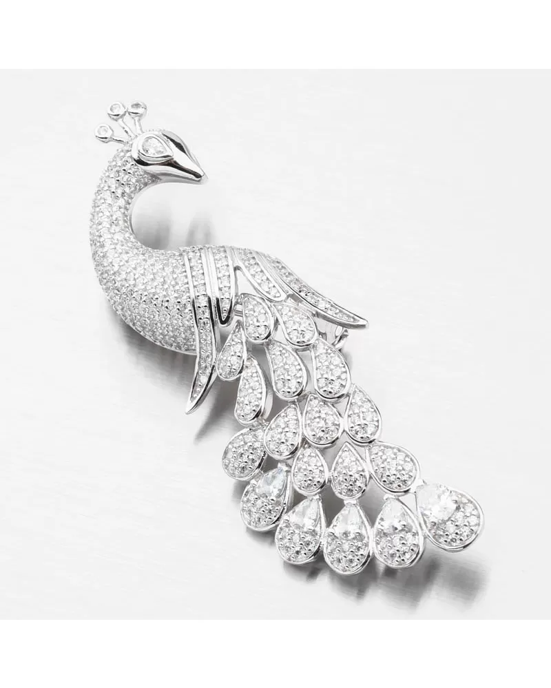 Táto brošňa s pávom motívom bude originálny a krásny darček pre vášho milovaného človeka. Brošňa určite nepatrí iba do vybavenia našich babičiek, pretože je to veľmi populárny klenot súčasnosti. Tento klenot je povinným vybavením mladých a starších manažérov, ale aj žien, ktoré sa im páči. Páv je vybavený bielymi zirkónmi, zaokrúhlenými v brilantnom strihu a potom päť zirkónov v tvare kvapky umiestneného v šrote. Peacock je symbolom krásy, sebavedomia a vznešenosti. Ale tiež nesmrteľnosť.