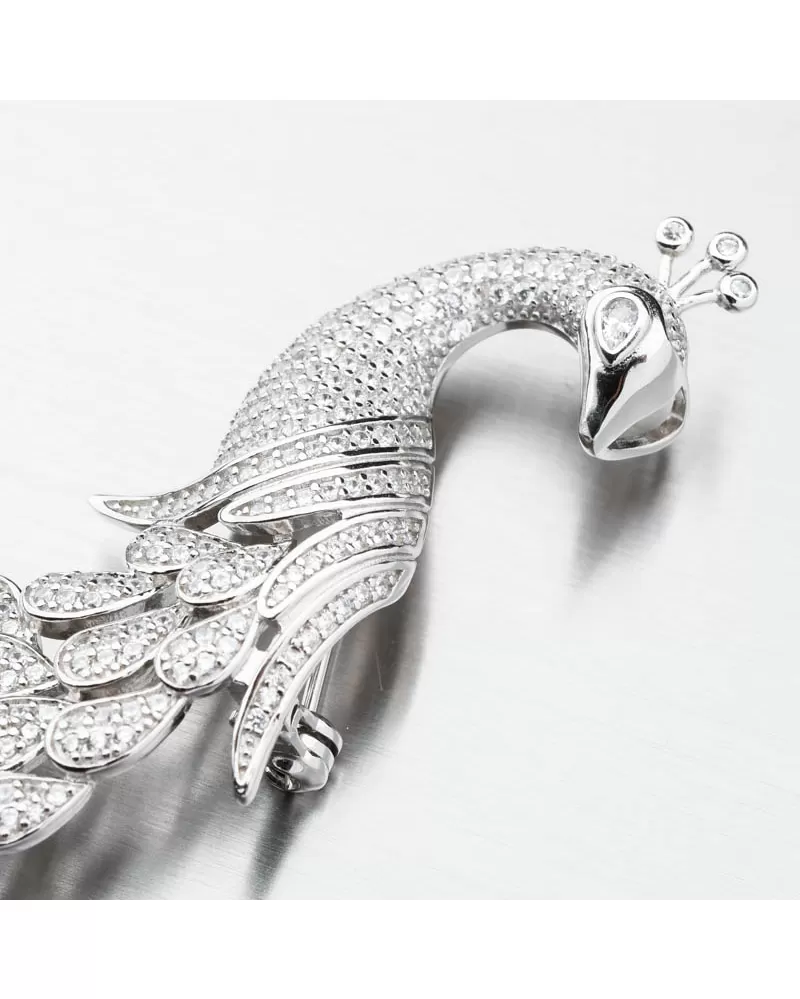 Strieborná brošňa Peacock s zirkónmi PKL-6010