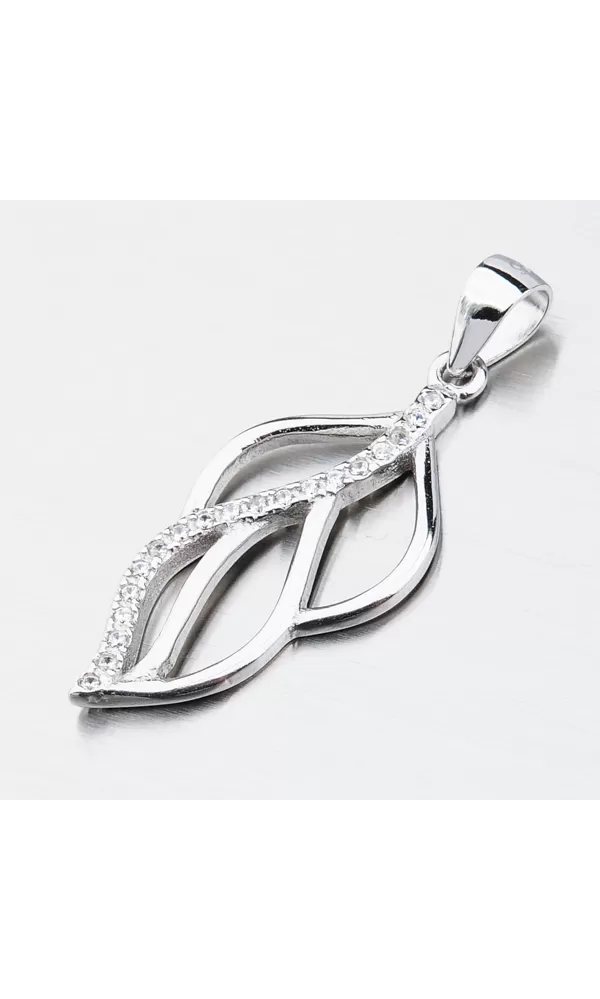 Elegantný prívesok v tvare lístočku je zdobený zirkónmi v briliantovom bruse. Prívesok je vyrobený zo striebra o rýdzosti 925/1000 v lesklej povrchovej úprave a povrch prívesku je zušľachtenýrhodiovaním.