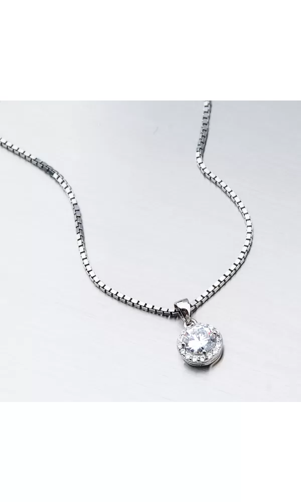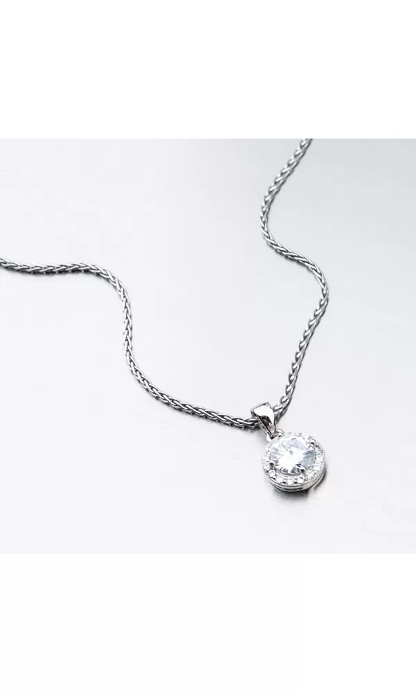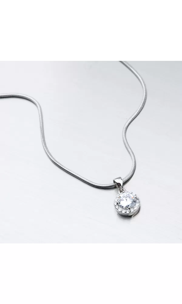 Jemný ale veľmi žiarivý prívesok v okrúhlom tvare je zložený z veľkého zirkónu v briliantovom bruse, ktorý je vsadený uprostred prívesku. Zirkón je uchytený štyrmi krapnami. Okolo veľkého zirkónu sú vsadené menšie zirkóny taktiež v briliantovom bruse. Tento brús dodáva zirkónom brilanciu pravých diamantov.