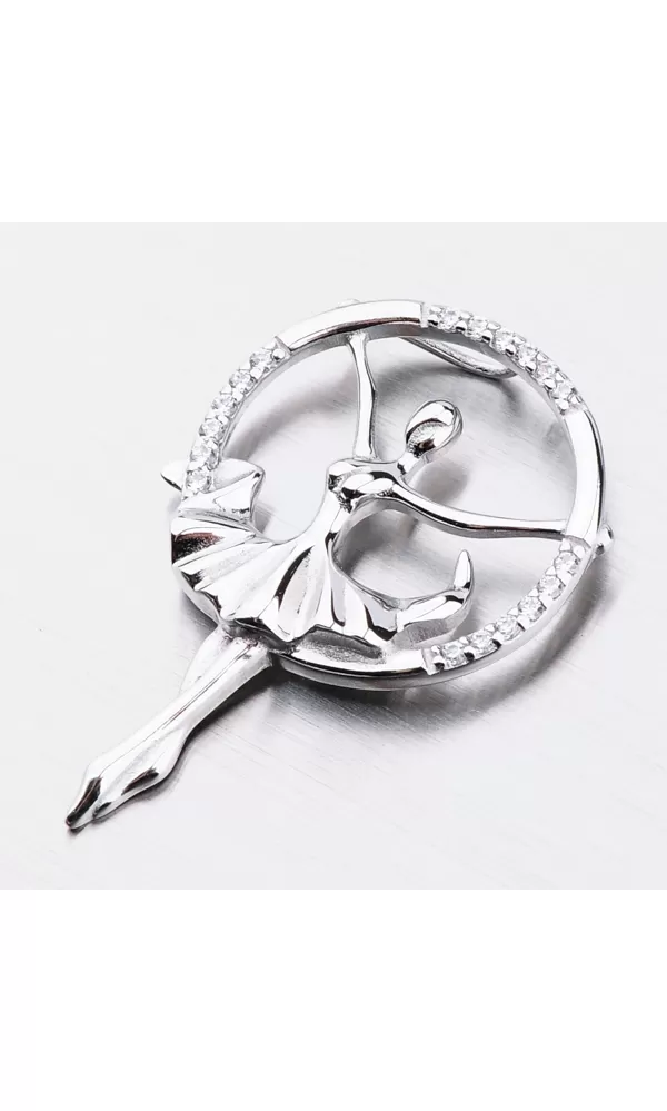 Skvelý tip na darček ako potešiť baletku alebo tanečnicu vo vašom okolí. Prívesok je detailne a precízne spracovaný. Baletka tancuje s kruhom, ktorý je vysadený zirkónmi v briliantovom bruse.