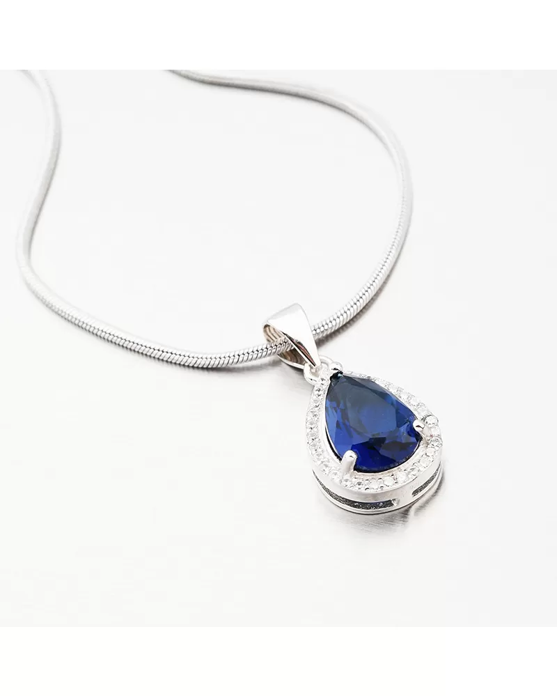 Túžite po niečom výraznom čo ozdobí Váš dekolt? Tak práve pre Vás je tu tento prívesok s modrým zirkónom v tvare kvapky. Okolo modrého zirkónu sú vsadené číre zirkóny v briliantovom bruse.