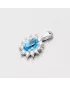 Elegantný dámsky prívesok zaujme žiarivými zirkónmi, ktoré sú vsadené po celom prívesku. Hlavný zirkón je oválny av modrej farbe a okolo neho sú vsadené drobnejšie zirkóny v bielej farbe.
