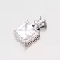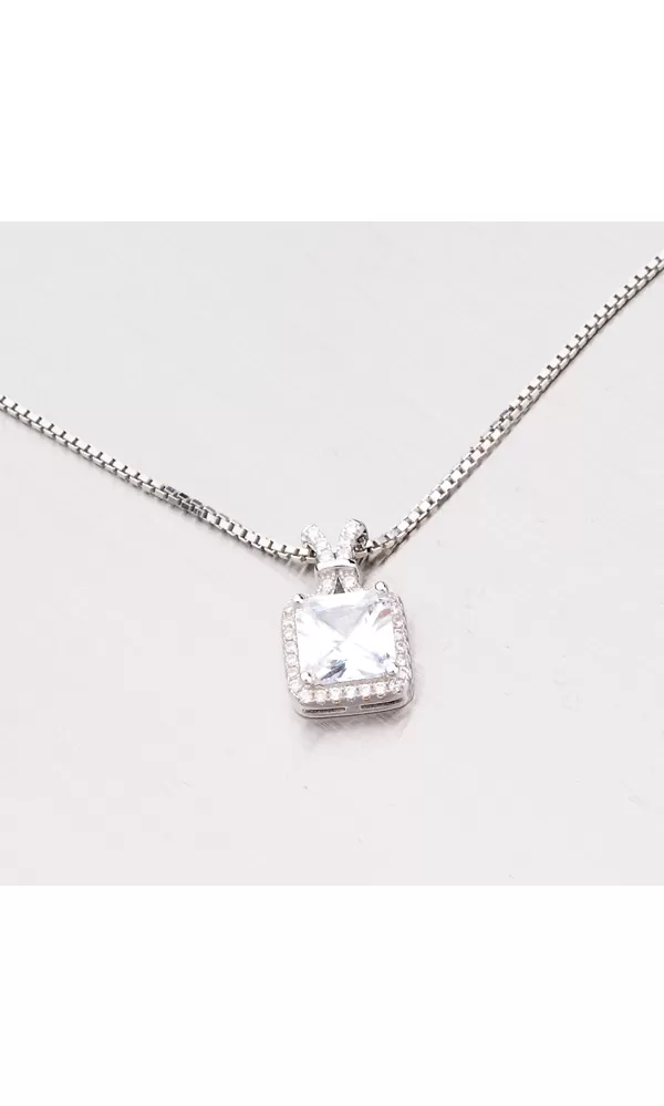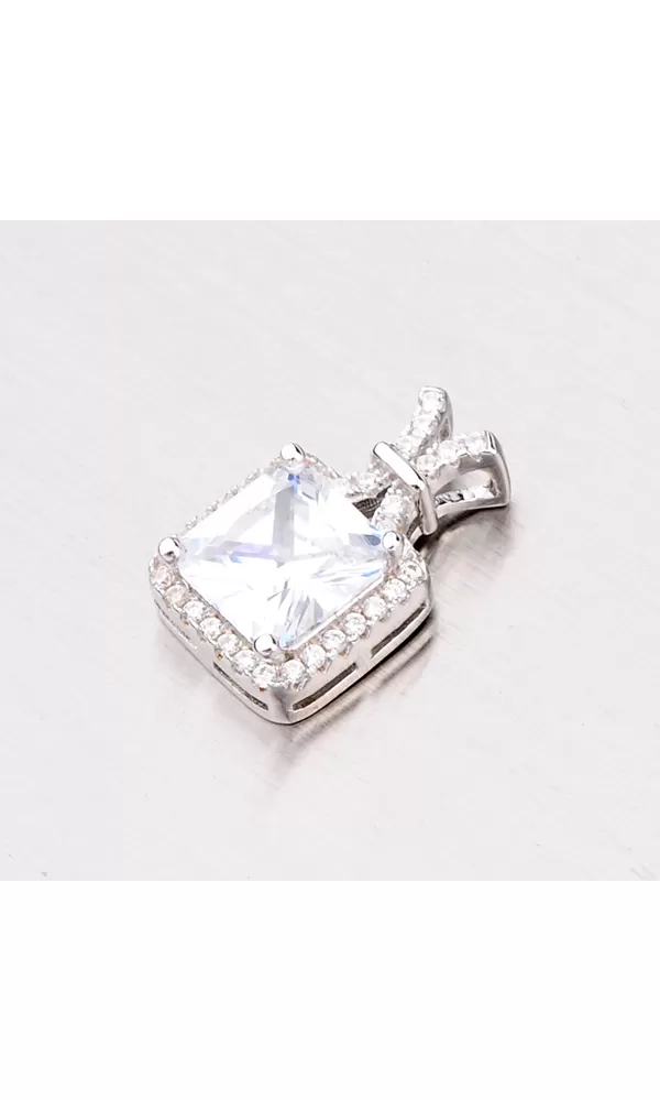 Elegantný strieborný prívesok zaujme žiarivými zirkónmi, ktoré sú vsadené po celom prívesku. V strede prívesku je jeden hlavný štvorcový zirkón o veľkosti 8 x 8 mm a potom sú okolo neho menšie zirkóny. K tomuto prívesku ponúkame v rovnakom dizajne aj náušnice, ktoré nájdete pod označením AE1063. Budete mať dokonalý komplet.