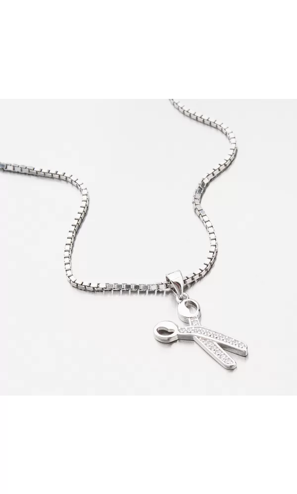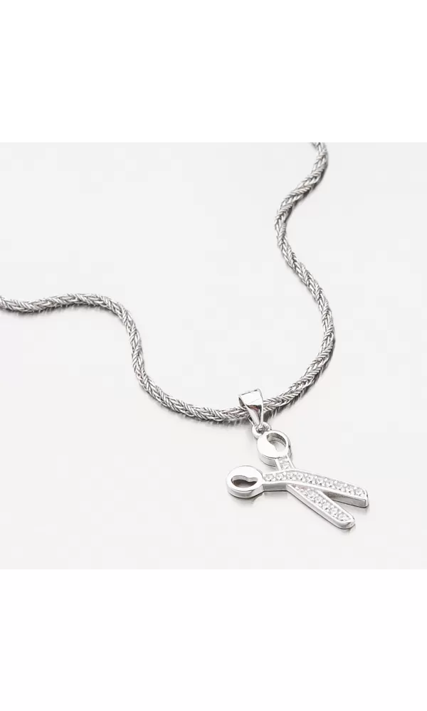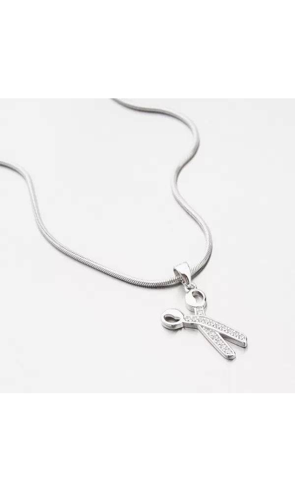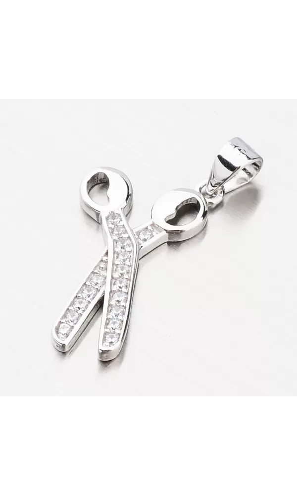Strieborný prívesok v tvare nožníc je zdobený zirkónmi v briliantovom bruse. Tento brús zirkónom dodáva brilanciu pravých diamantov.