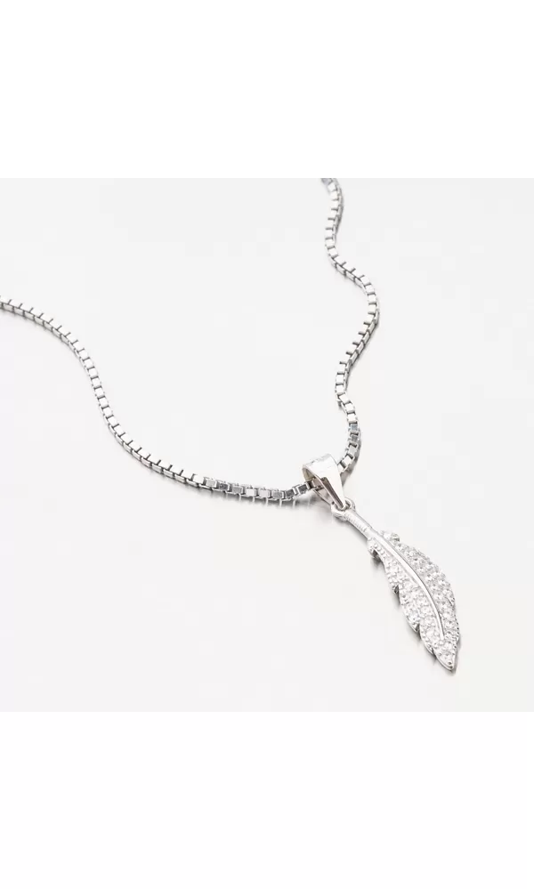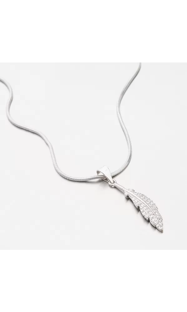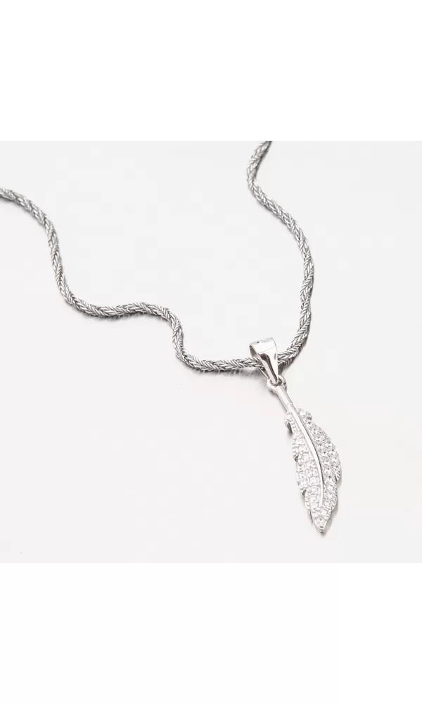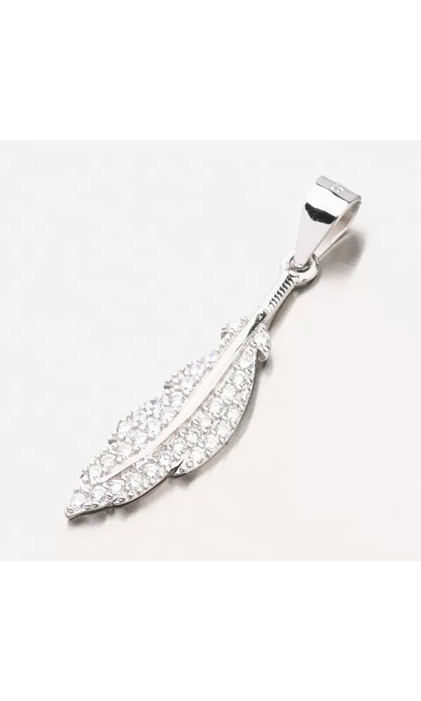 Prekrásny prívesok v tvare pierka vás očarí na prvý pohľad. Prívesok je bohato vysadený zirkónmi v briliantovom bruse. Tento brús zaisťuje zirkónom brilanciu pravých diamantov.