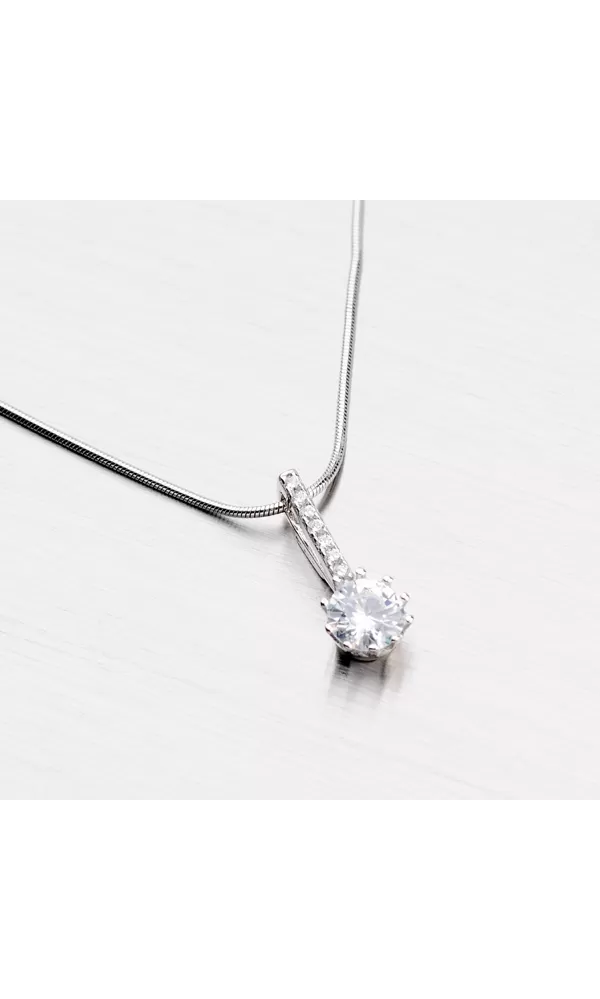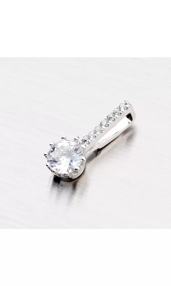 Hľadáte elegantný šperk čo vám ozdobí dekolt? Tento prívesok je to čo hľadáte. Elegantný design a jemné spracovanie bude to pravé. Prívesok je celý vysadený zirkónmi. Jeden veľký hlavný zirkón a rad zirkónu nad ním.