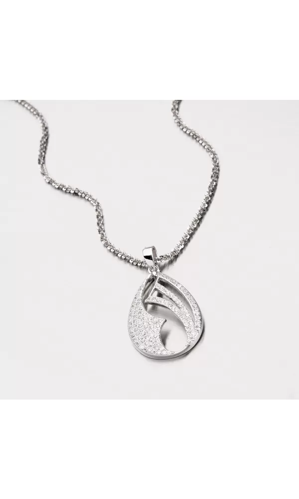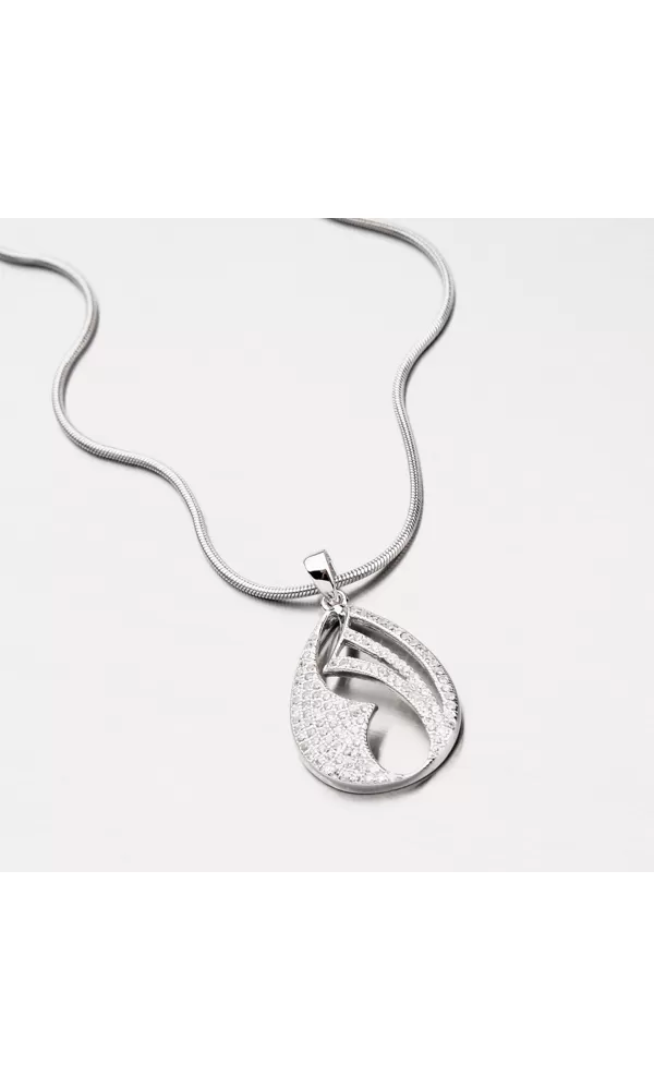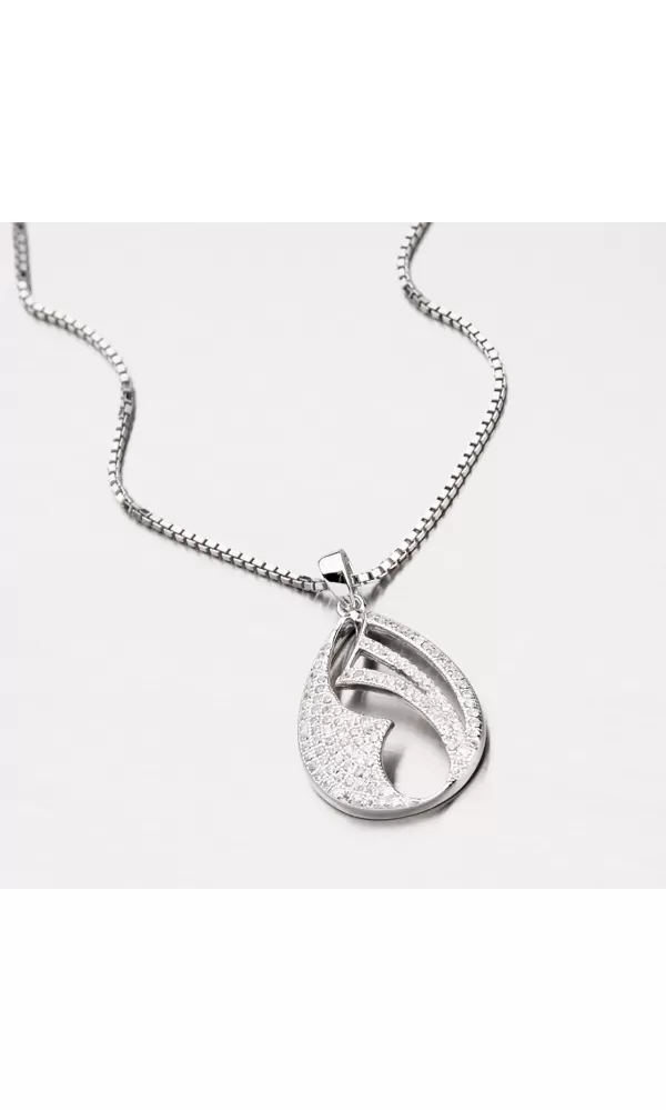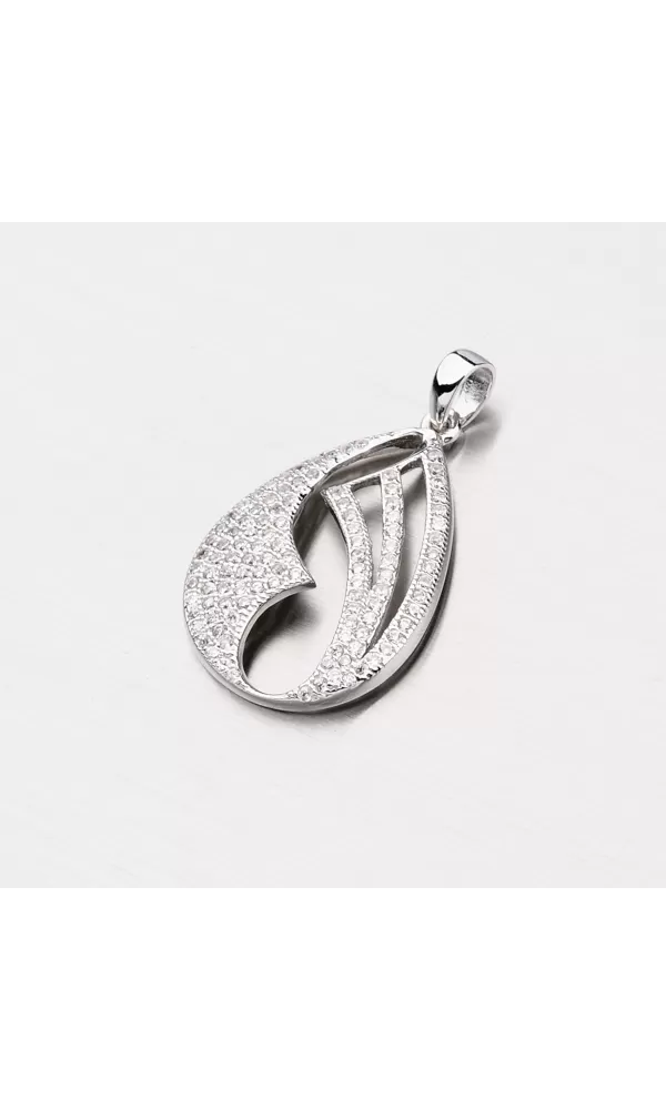 Prívesok vyrobený zo striebra o rýdzosti 925/1000 v lesklej povrchovej úprave a povrch prívesku je zušľachtený rhodiovaním. Prívesok je zdobený žiarivými zirkónmi bielej farby, ktoré rozjasnia váš vzhľad. Prívesok je celý vyrobený do tvaru kvapky so zaujímavými otvormi.