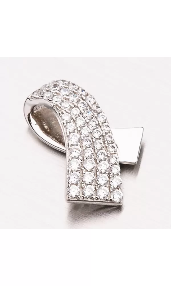Krásny prívesok v zaujímavom dizajne je vyrobený v lesklej povrchovej úprave a zdobený žiarivými zirkónmi v okrúhlom bruse. Prívesok sa bude vynímať vo vašom dekolte.