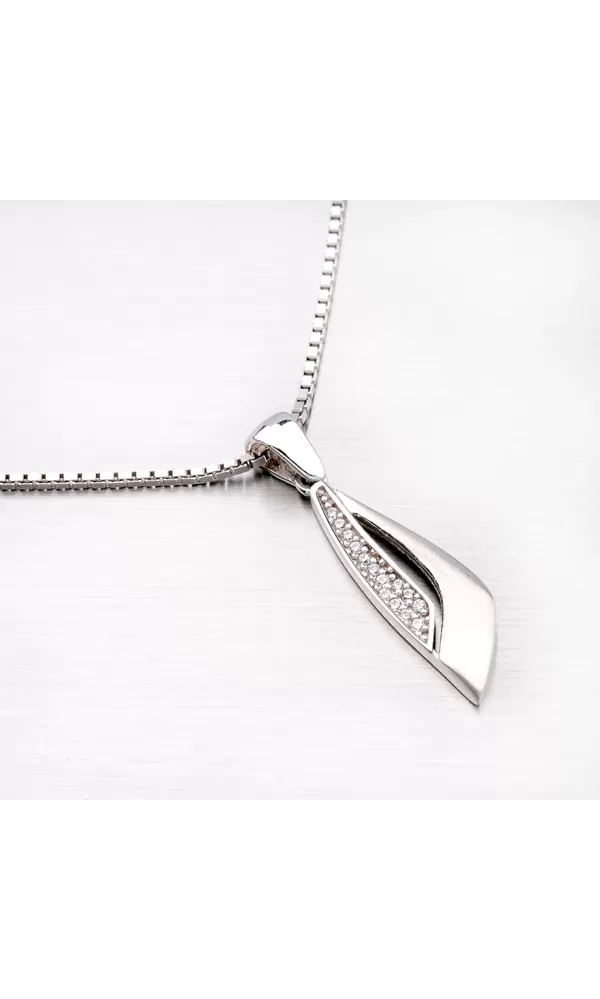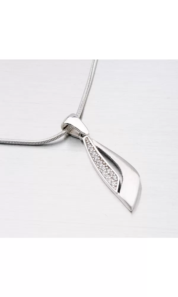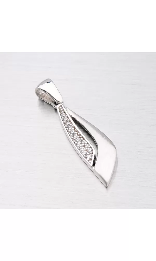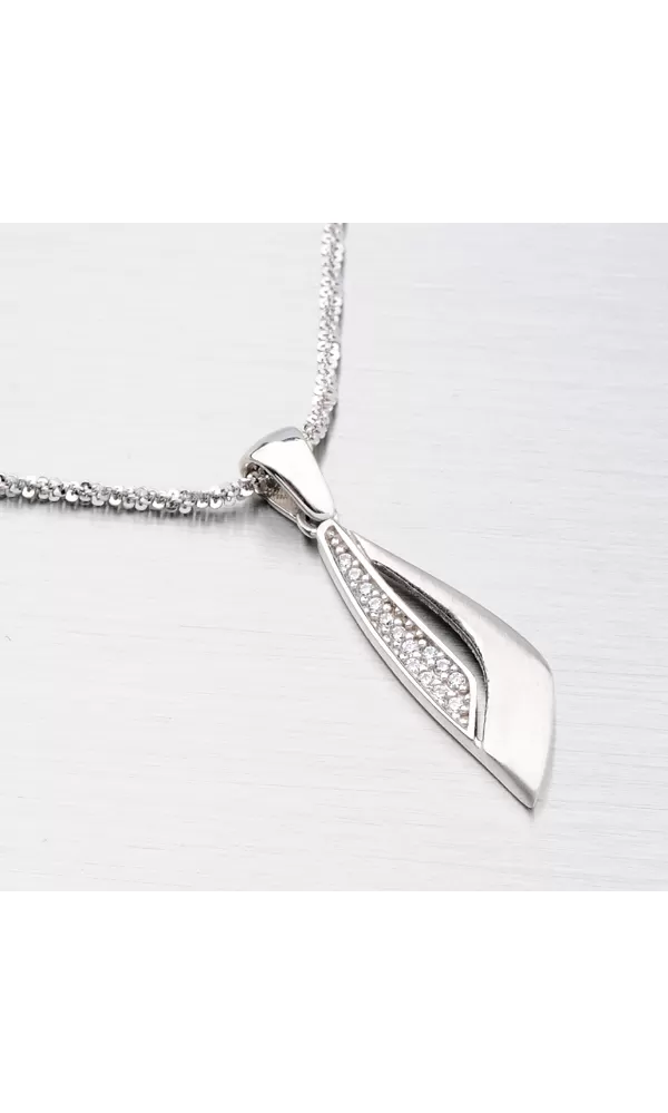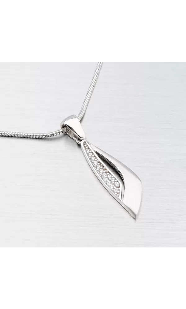 Krásny prívesok, ktorý určite poteší každú ženu, je vyrobený v kombinácii lesklej a matnej povrchovej úprave a prierezom. Je zdobený žiarivými zirkónmi v okrúhlom bruse. Prívesok sa bude vynímať vo vašom dekolte.
