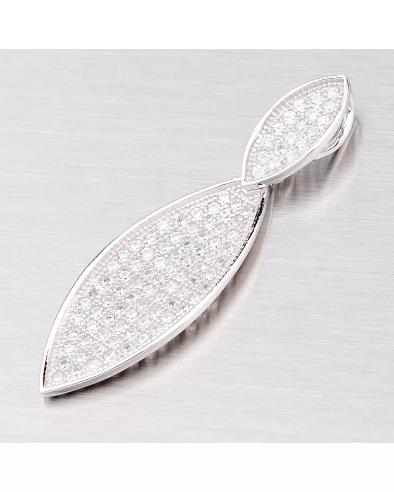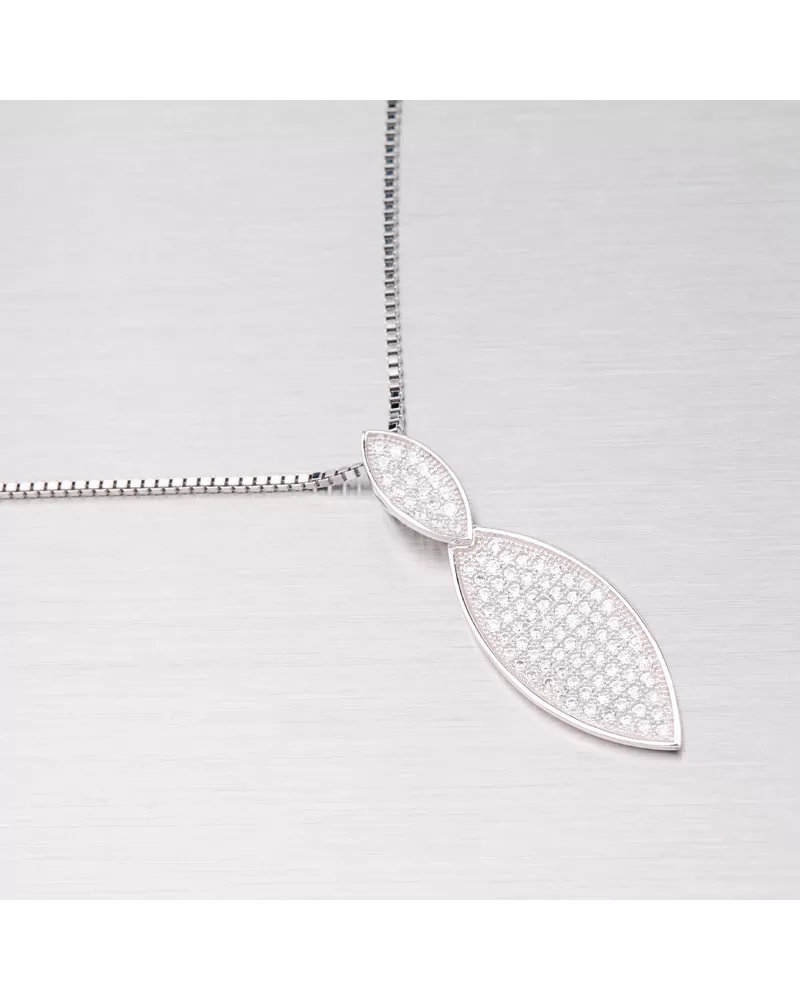 Elegantný prívesok s bielymi zirkónmi, ktoré sú do šperku zasadené technikou microsetting je vyrobený zo striebra rýdzosti 925/1000 v lesklej úprave s rhodiovaním. K prívesku je vhodné použiť retiazku o max. priemere 1,75 mm.