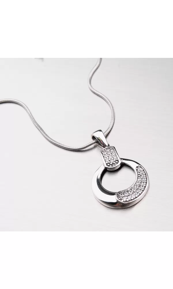 Prekvapte originálnym šperkom a buďte neprehliadnuteľná. Tento prívesok vám dokonale zvýrazní dekolt. Prívesok je vyrobený zo striebra o rýdzosti 925/1000 v lesklej povrchovej úprave a povrch prívesku je zušľachtený rhodiovaním. Strieborný prívesok je navyše zdobený zirkónmi v briliantovom bruse.