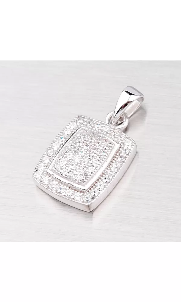 Krásny prívesok s bielymi zirkónmi, ktoré sú do šperku zasadené technikou microsetting je vyrobený zo striebra rýdzosti 925/1000 v lesklej úprave s rhodiovaním. K prívesku je vhodné použiť retiazku o max. priemere 2,75 mm.