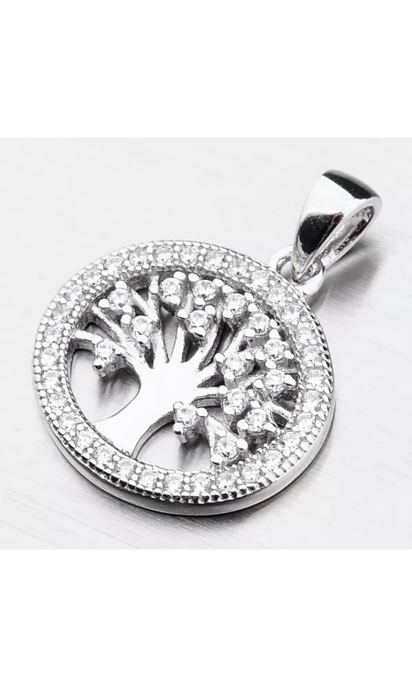 [ Veľkosť tohto prívesku si môže dovoliť veľa variantov, ako aplikovať prívesok. Dominantnou črtou prívesku je strom života, ktorý sa vkladá do oválu. Strom života je zvýraznený zirkónmi v brilantnom strihu