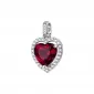 Dámský přívěsek vyroben ze stříbra o ryzosti 925/1000, zdobí kubický zirkon v červené barvě. Přívěsek doplňují čiré kubické zirkony, které jsou vsazeny kolem obvodu. Stříbrný přívěsek je navržen tak, aby dokonale přilnul k dekoltu. Přívěs je zušlechtěn rhodiováním. Rhodium je ušlechtilý drahý kov ze skupiny platinových kovů. Rhodiováním stříbrných prstenů galvanickým nanášením tohoto drahého kovu se stává povrch šperku tvrdší, stálejší a odolnější vůči vnějším vlivům jako je mechanický otěr, poškrábání, nabíhání stříbra, lidský pot, kosmetické přípravky a další. Rhodium je antialergické.